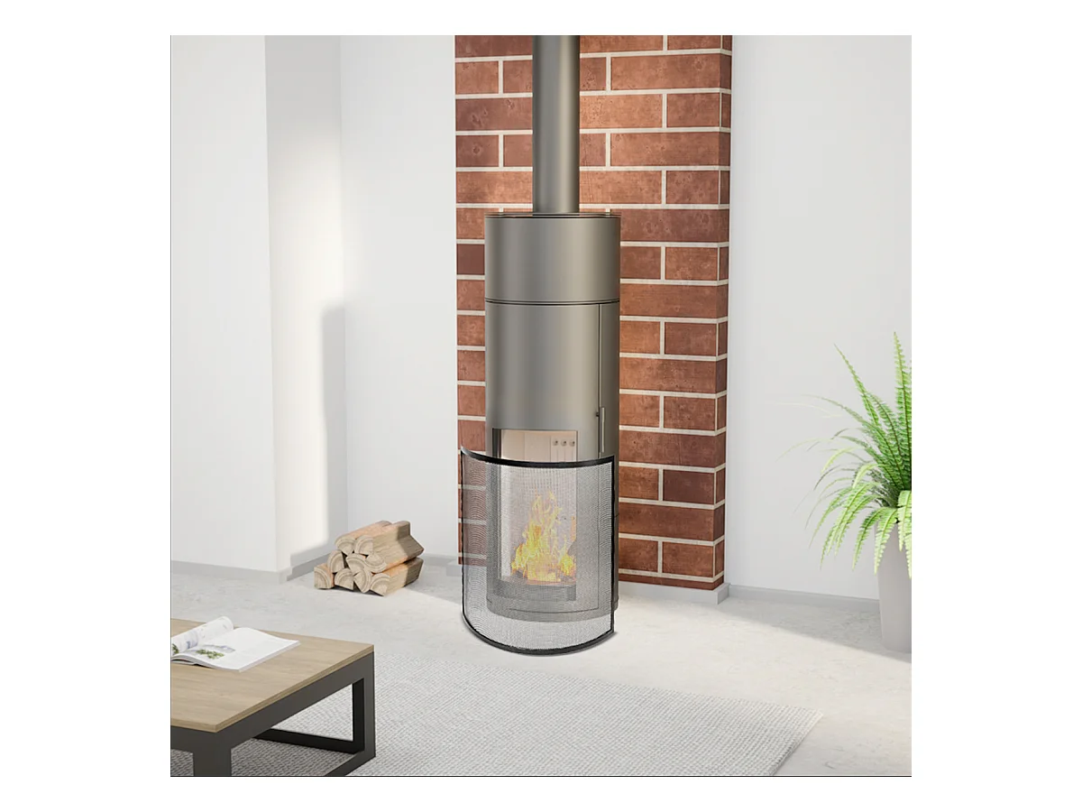 Grille de Protection, Pare-feu pour cheminée, courbe en Fer forgé couleur Noir - Hauteur 67 x Longueur 60 cm