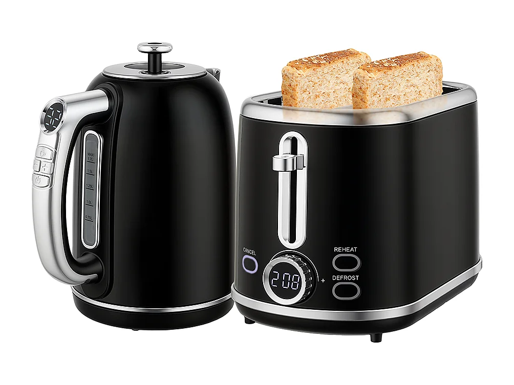 Grille-pain Ensemble bouilloire en acier inoxydable 1,7 L et 2200 W et grille-pain à 2 tranches Noir