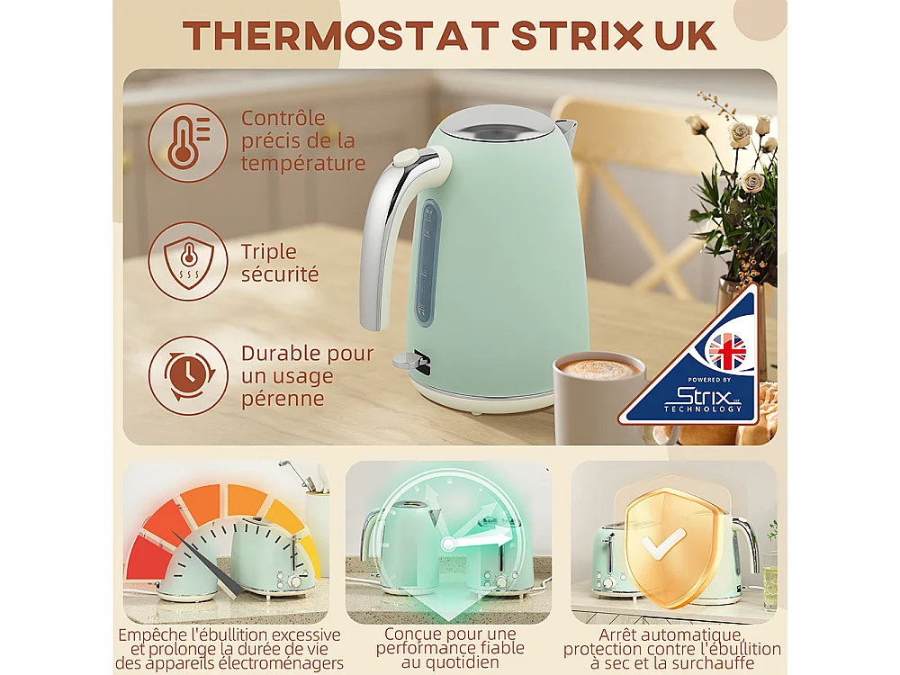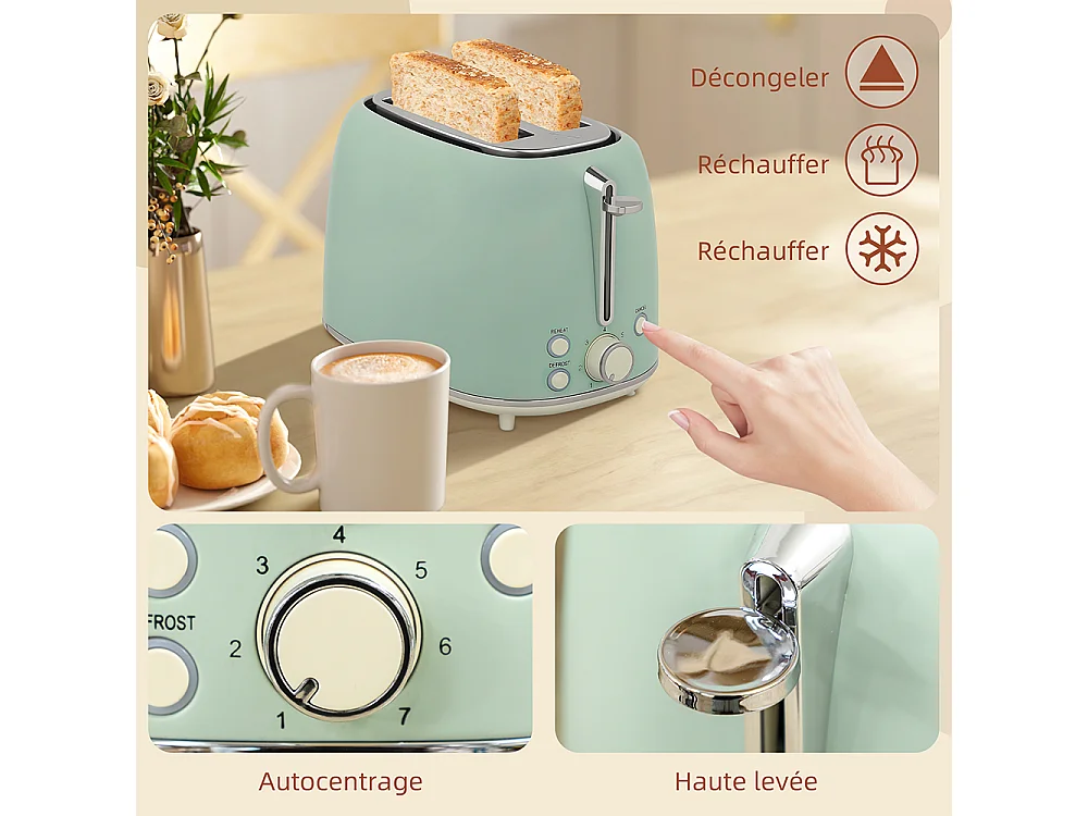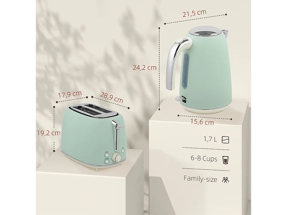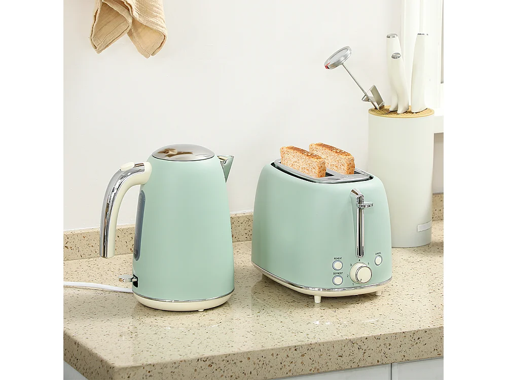 Grille-pain Ensemble bouilloire en acier inoxydable 1,7 L et 2200 W et grille-pain à 2 tranches Vert