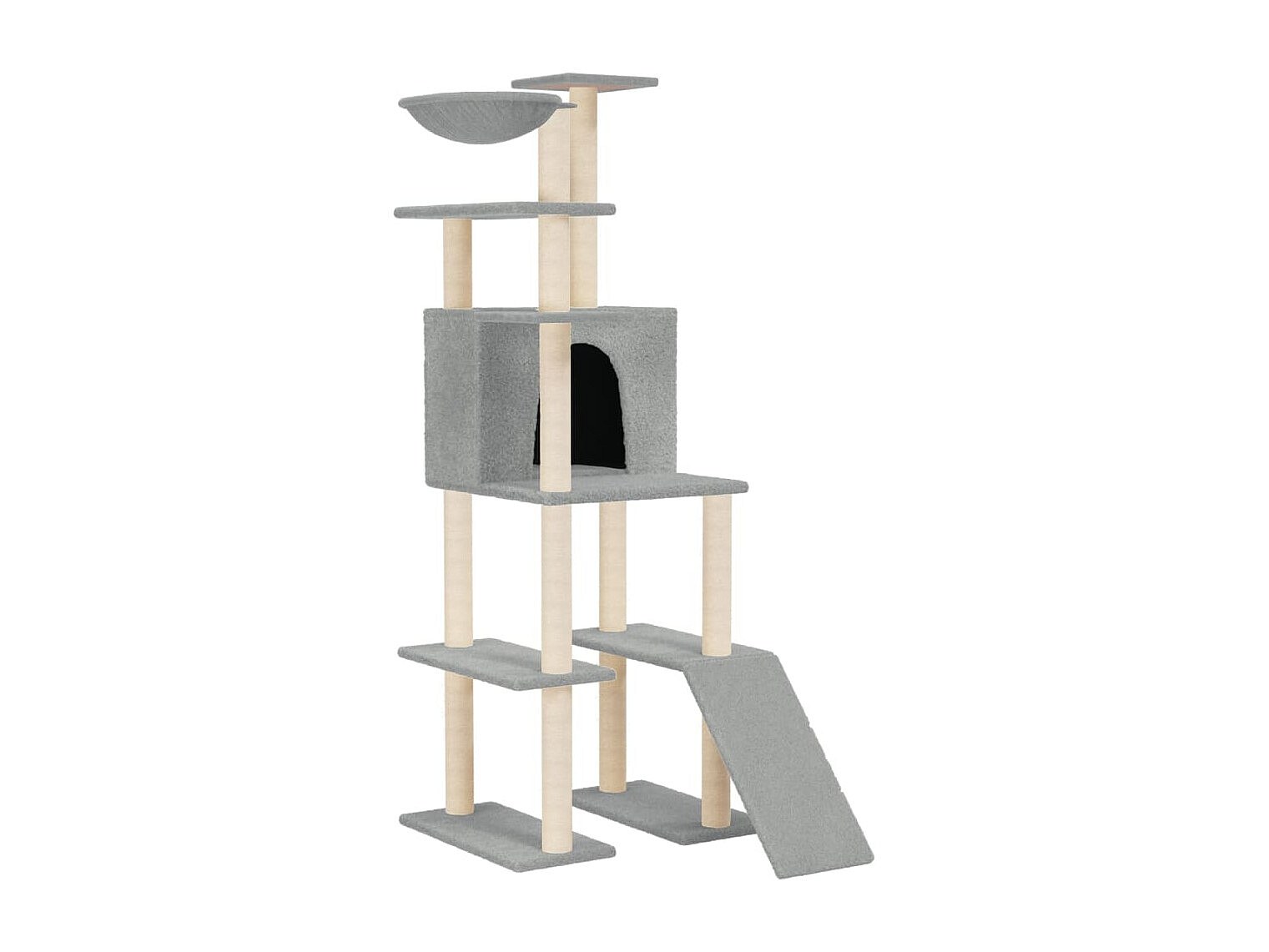 Sindar Arbre à chat avec griffoirs en sisal Gris clair 166 cm