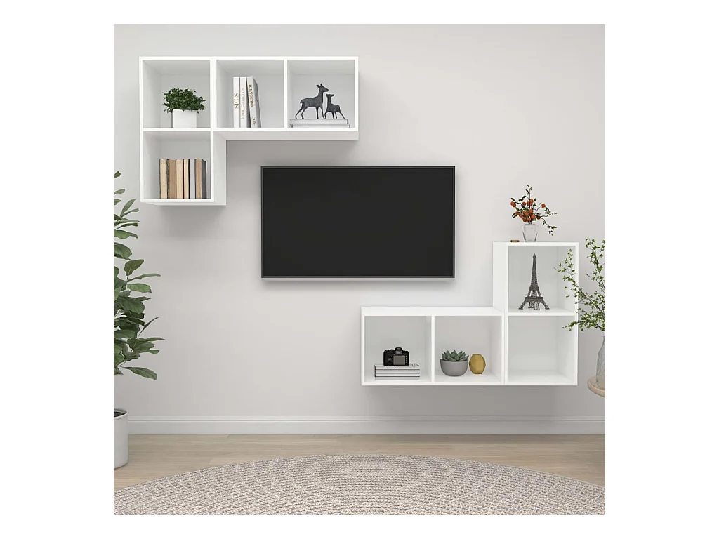 Grimjar Meubles TV muraux 4 pcs Blanc Bois d'ingénierie