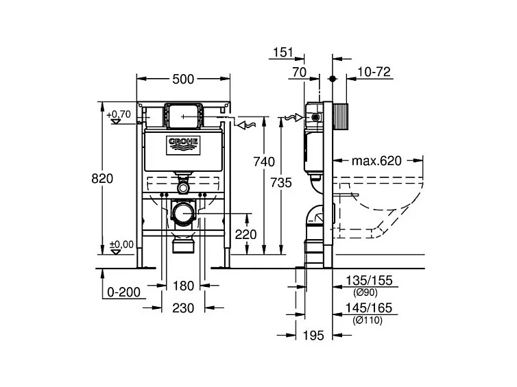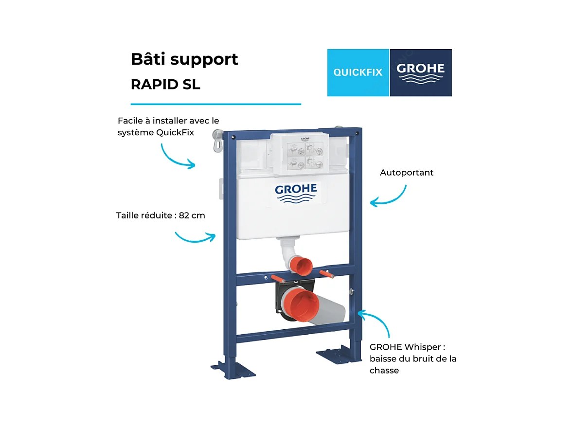 GROHE - Bâti support pour wc hauteur réduite Rapid SL, 0.82 m + plaque de commande chromée