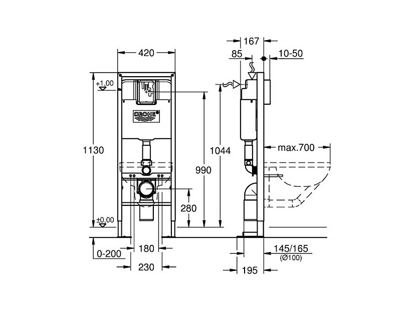 GROHE - Bati support pour wc Rapid SL 1.13 m x 0.42 m