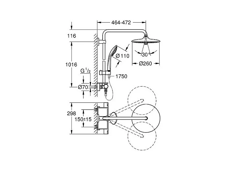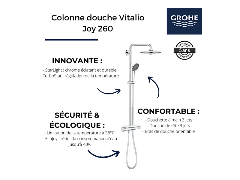 GROHE Colonne de douche thermostatique Vitalio Joy 260 avec nettoyant robinetterie GrohClean
