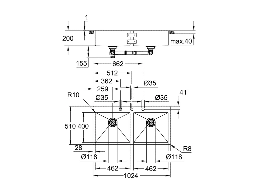 GROHE Evier 1 cuve et demie en acier inoxydable K800