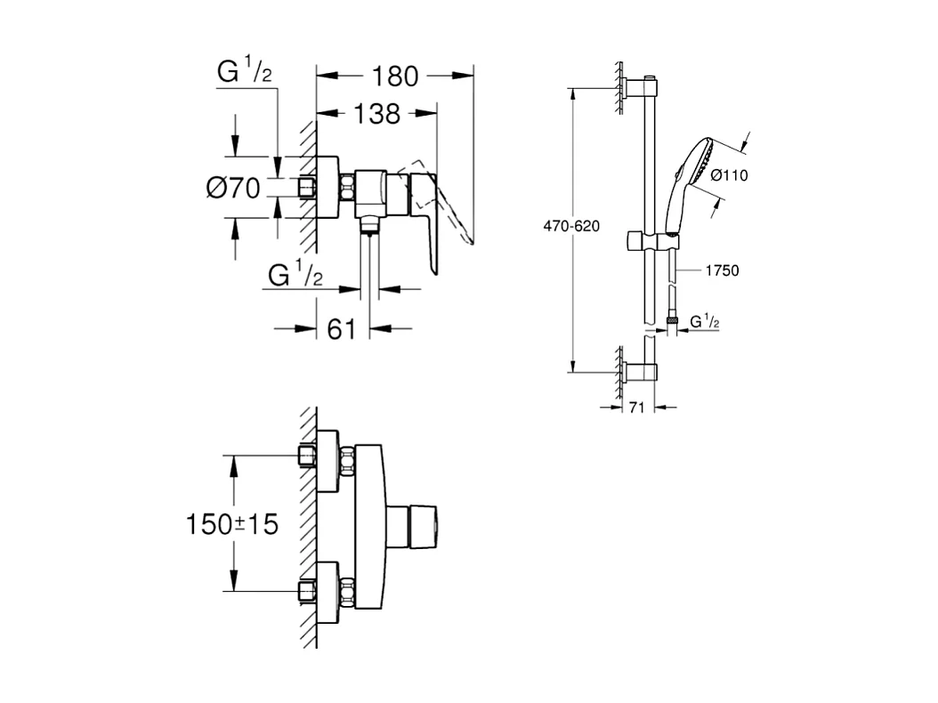 Pack mitigeur de douche Grohe Start 2021 avec ensemble de douche 2 jets GROHE chromé