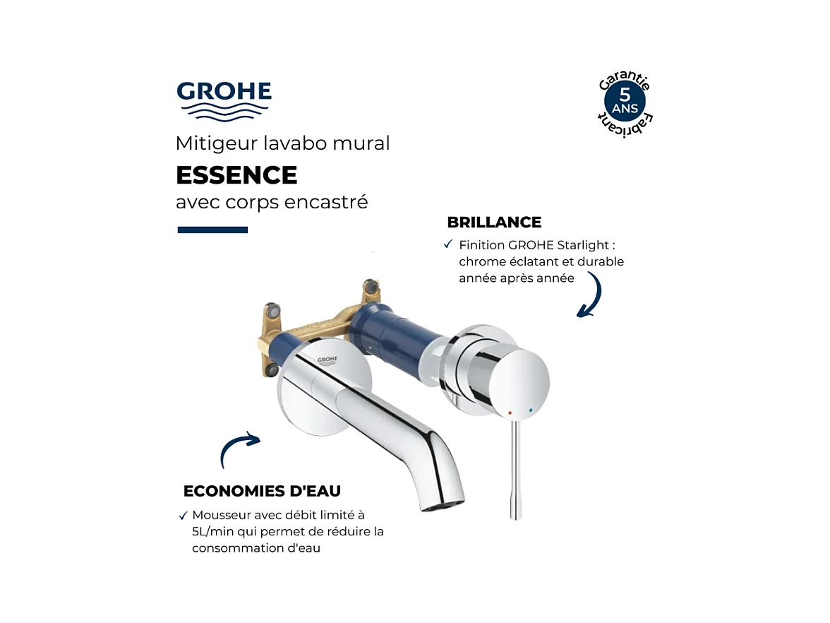Grohe Mitigeur monocommande 2 trous lavaboTaille M Essence - Graphite+corps encastré