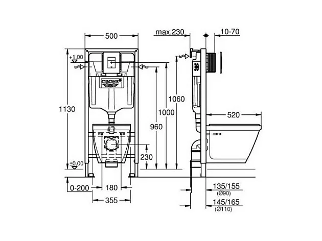 Grohe Pack WC suspendu sans bride Bau Ceramic + abattant + plaque blanche + bâti Grohe
