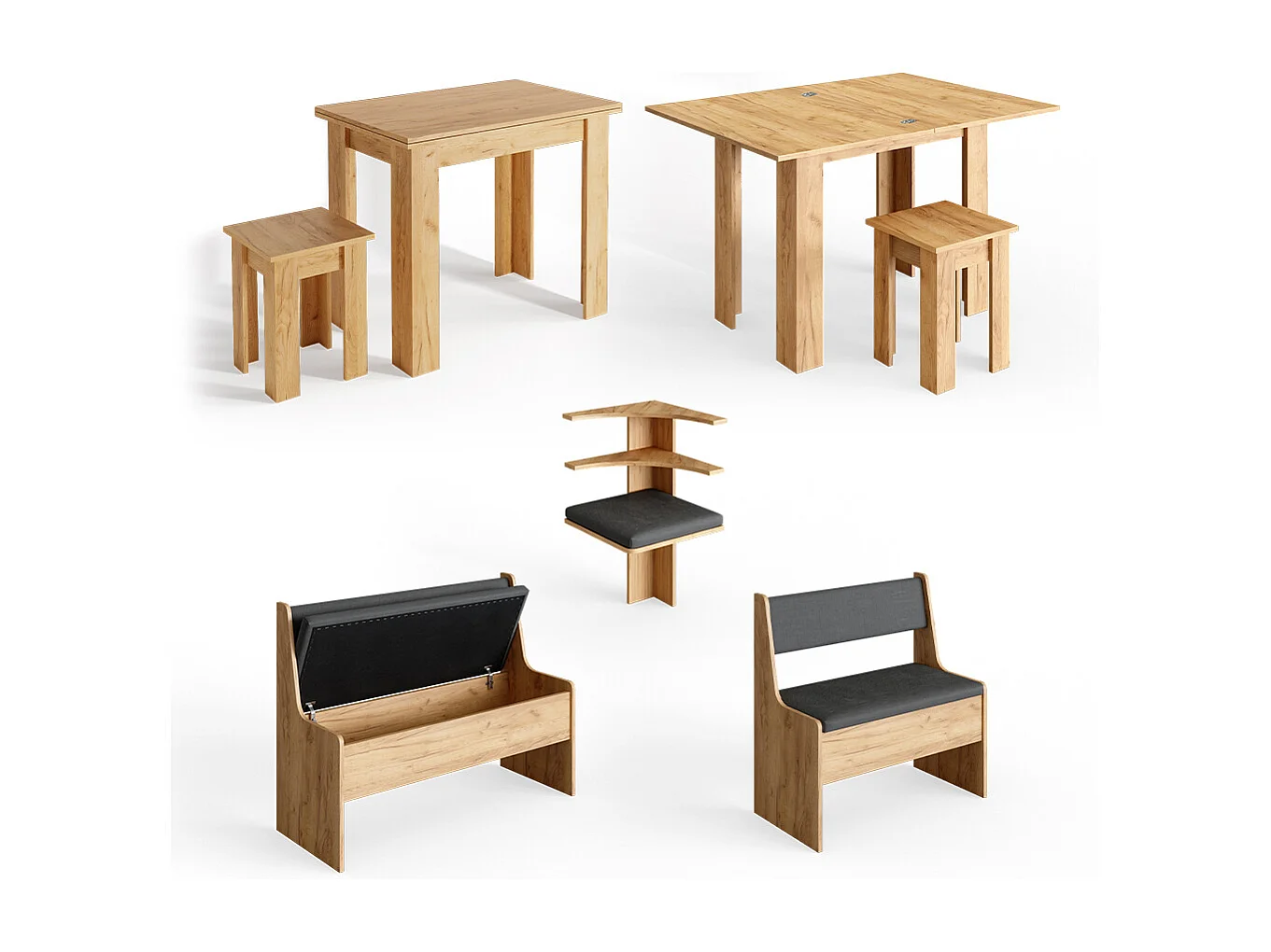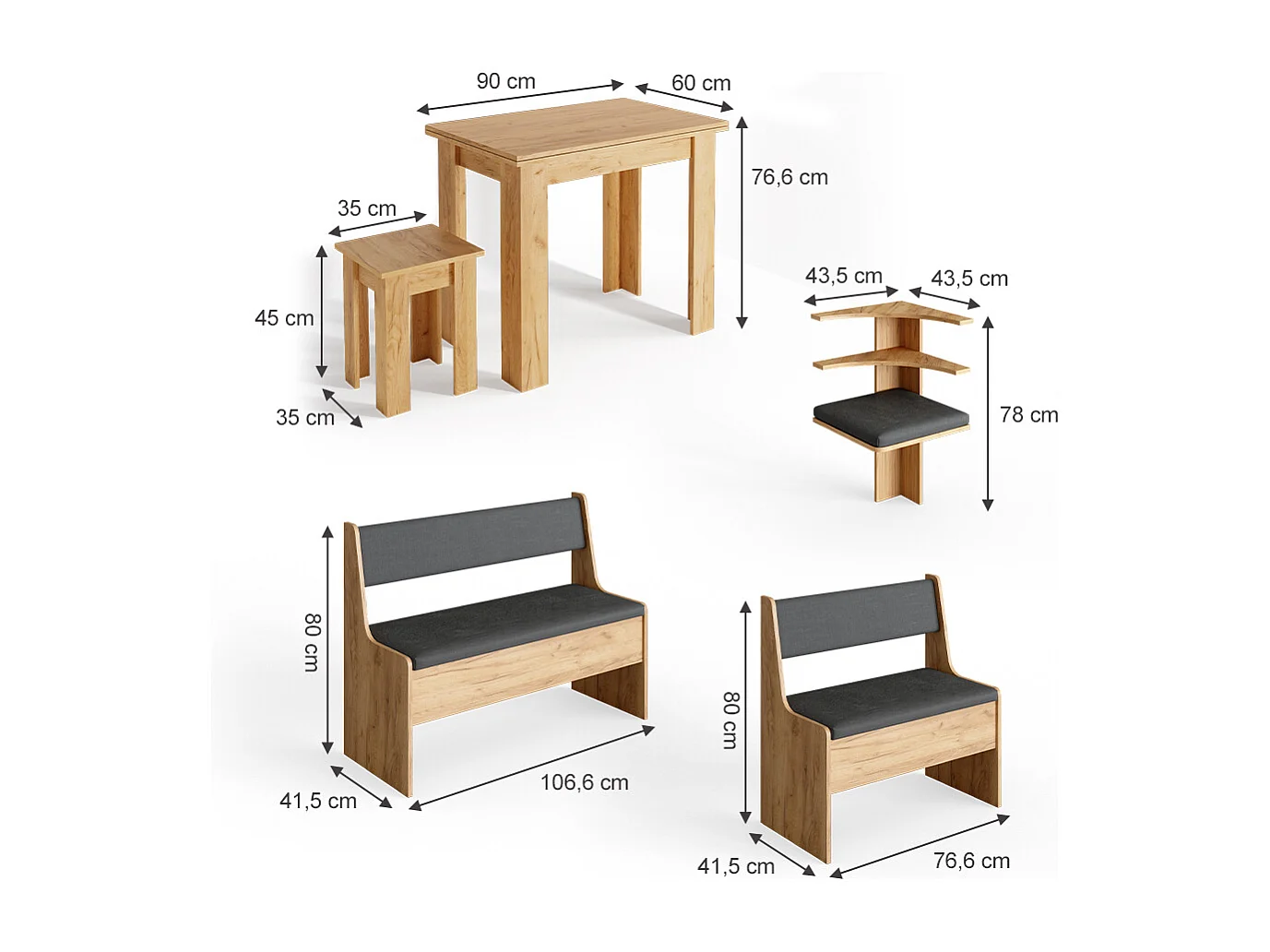Groupe de banquettes dangle chêne de force doré 150x120x80 roman