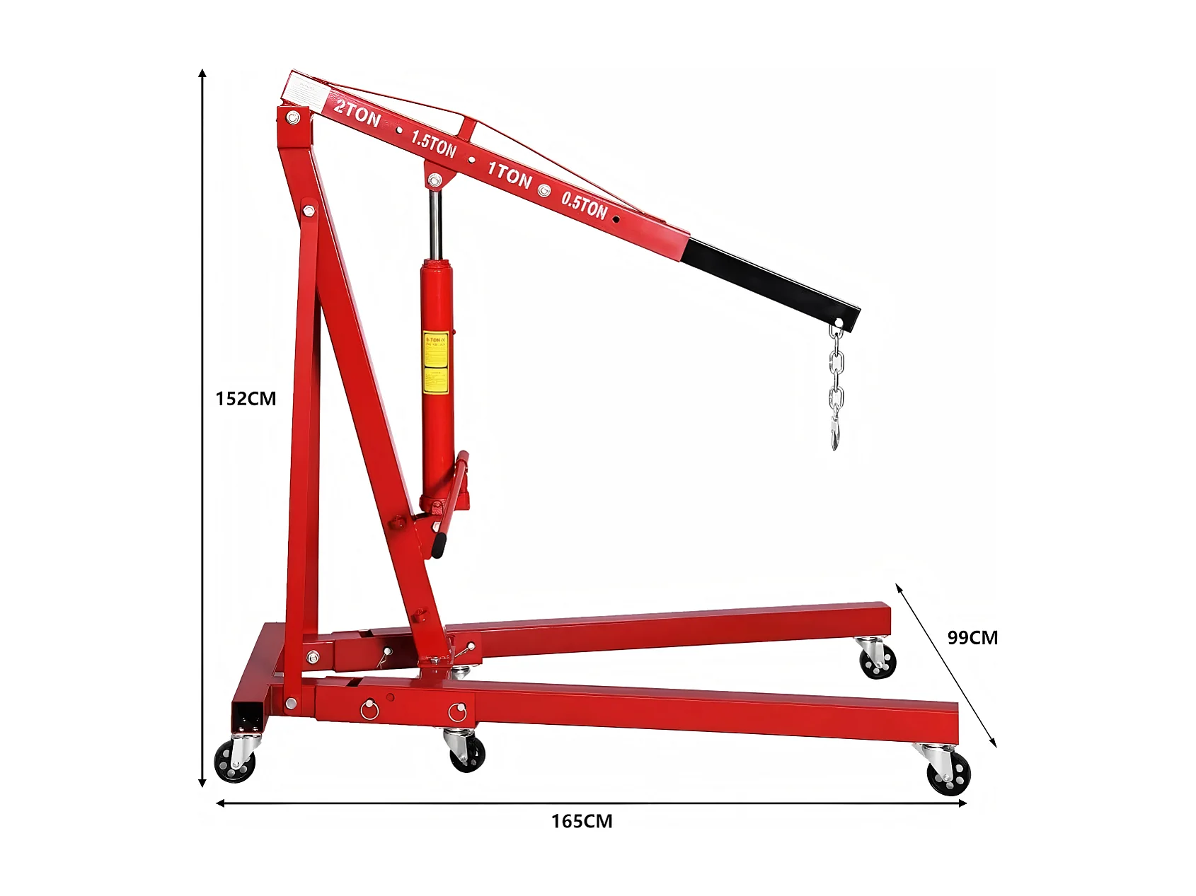 Grue à moteur hydraulique pliable, Grue d’atelier, Charge MAX 2000kg, Plage de levage : 0-1830 mm, avec roues universelles, 165x99x152CM