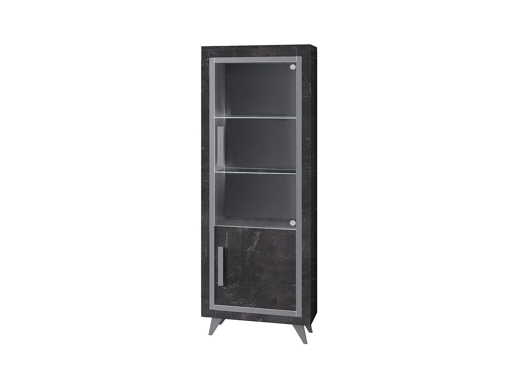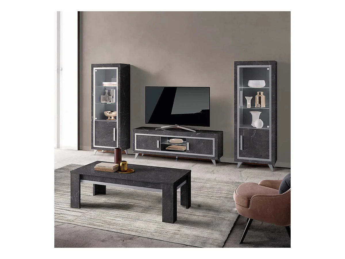 GUEDA - Ensemble Salon Complet Effet Marbre Anthracite Meuble TV et Vitrines avec Leds + Table Basse