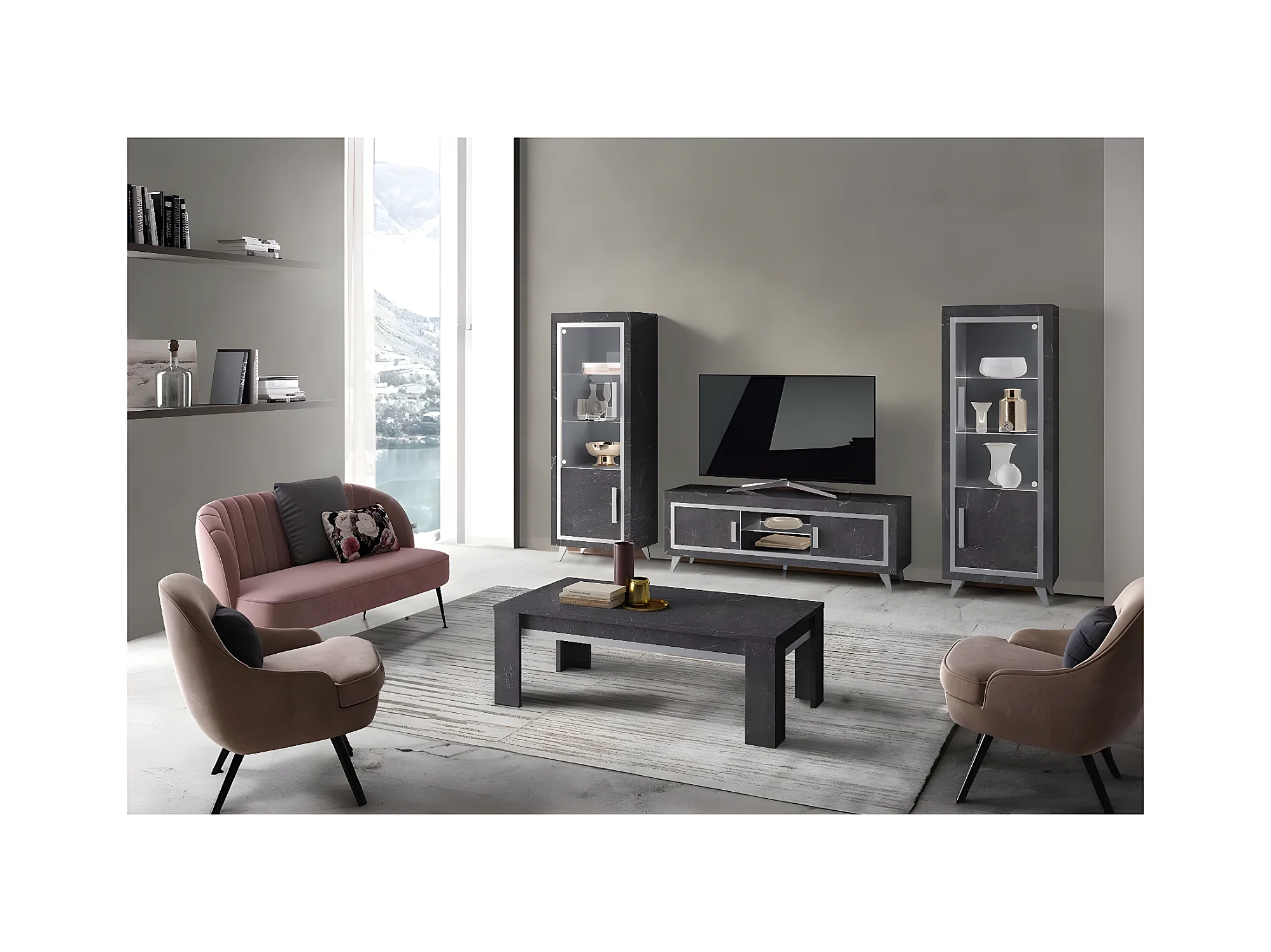 GUEDA - Vitrine Gauche Effet Marbre Anthracite Finition Argent avec Leds