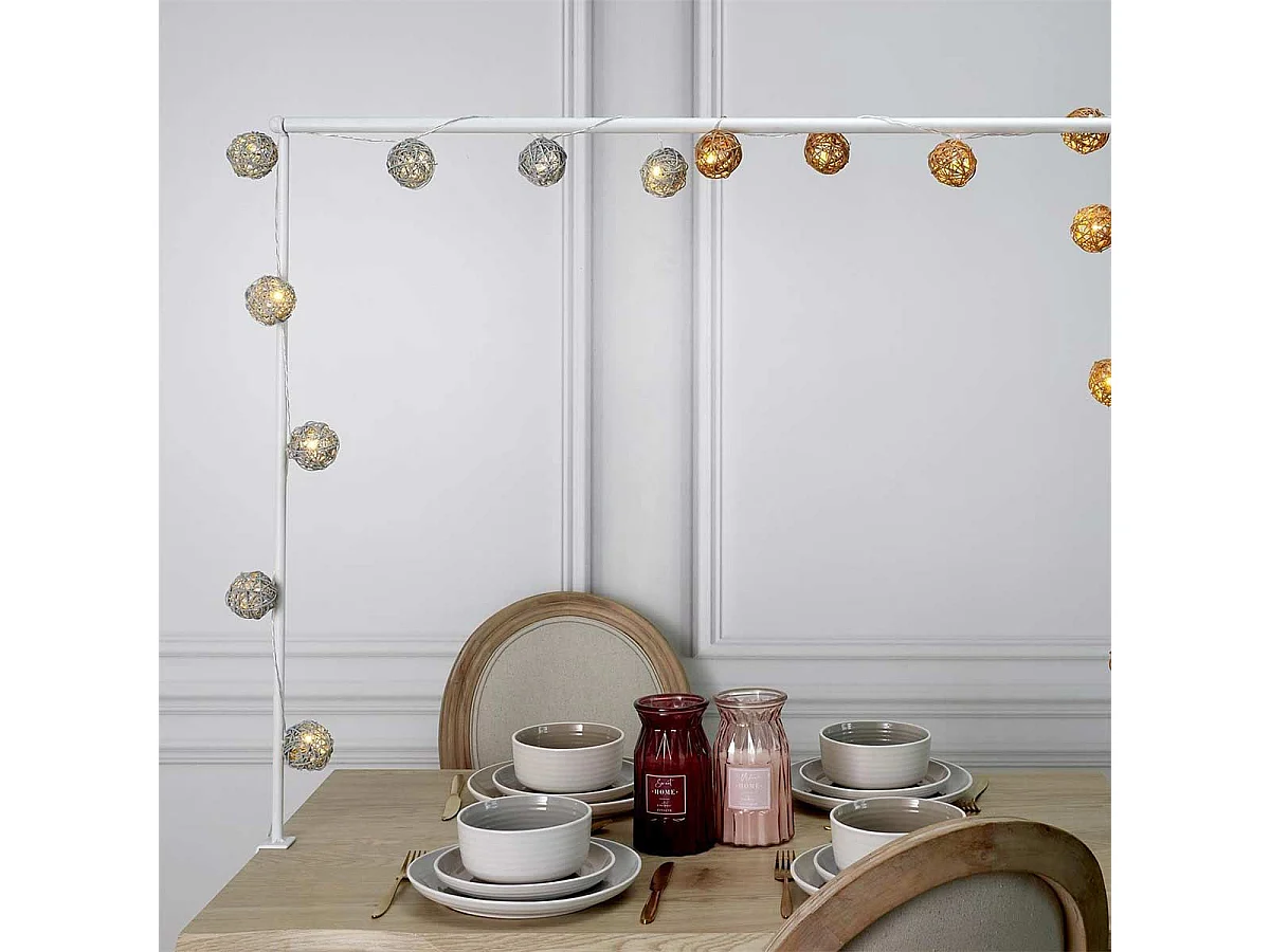 Guirlande Lumineuse 8 LED "Boule Rotin" 156cm Naturel
