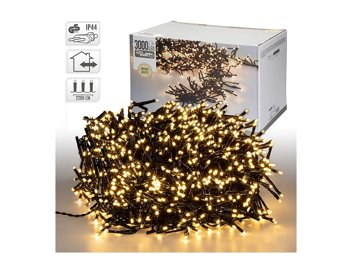 Guirlande lumineuse 3000 LEDs cluster éclairage blanc chaud intérieur/extérieur