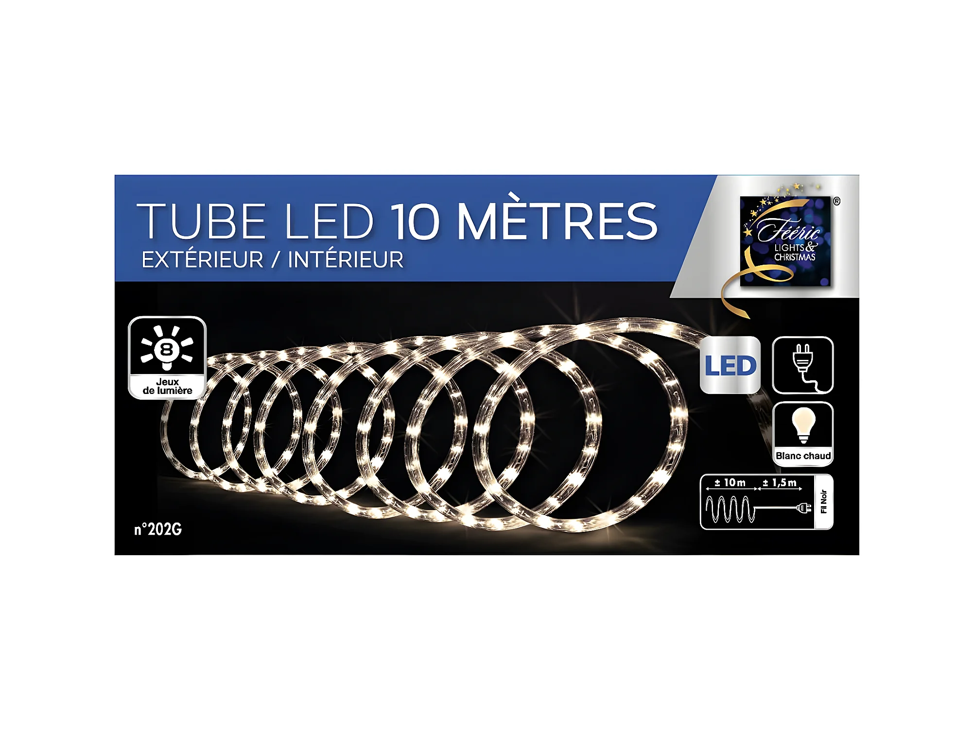 Guirlande Lumineuse Extérieur Tube 6 m 108 LED Blanc chaud 8 jeux de lumière