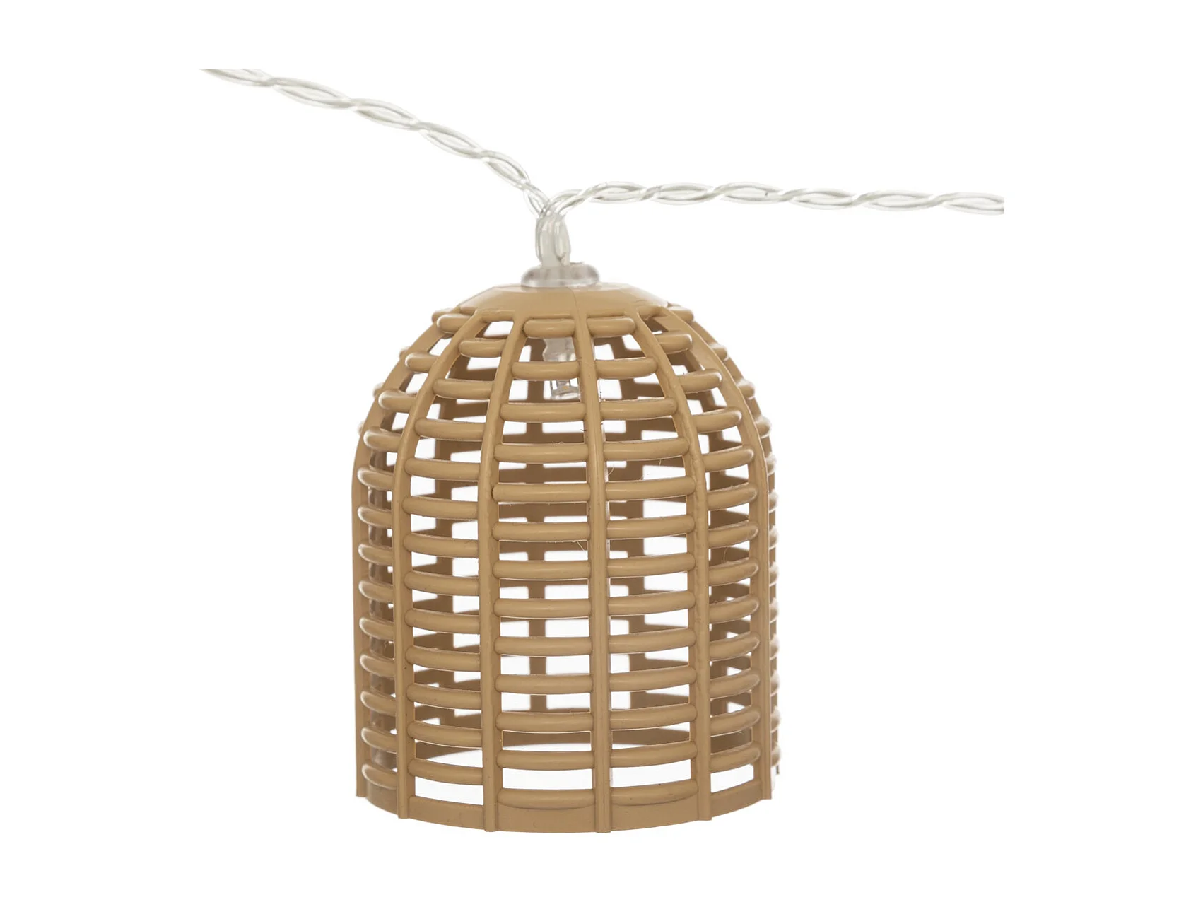 Guirlande Lumineuse Solaire 10 petits Abat-jours aspect Rotin LED Blanc chaud sur 3.35 mètres