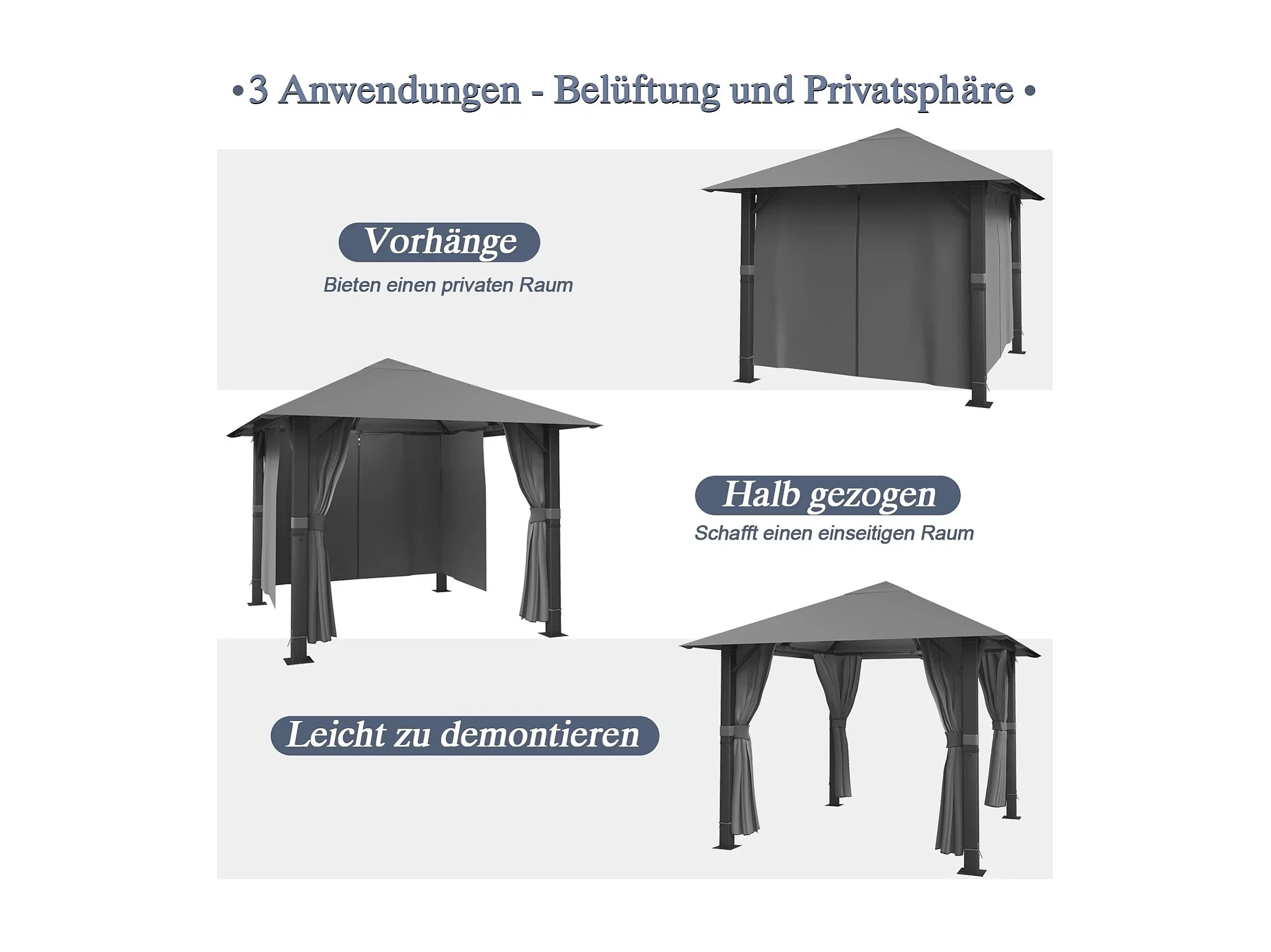 GUNJI Tente de Jardin Pavillon 3×4m, Aluminium Résistante aux Intempéries