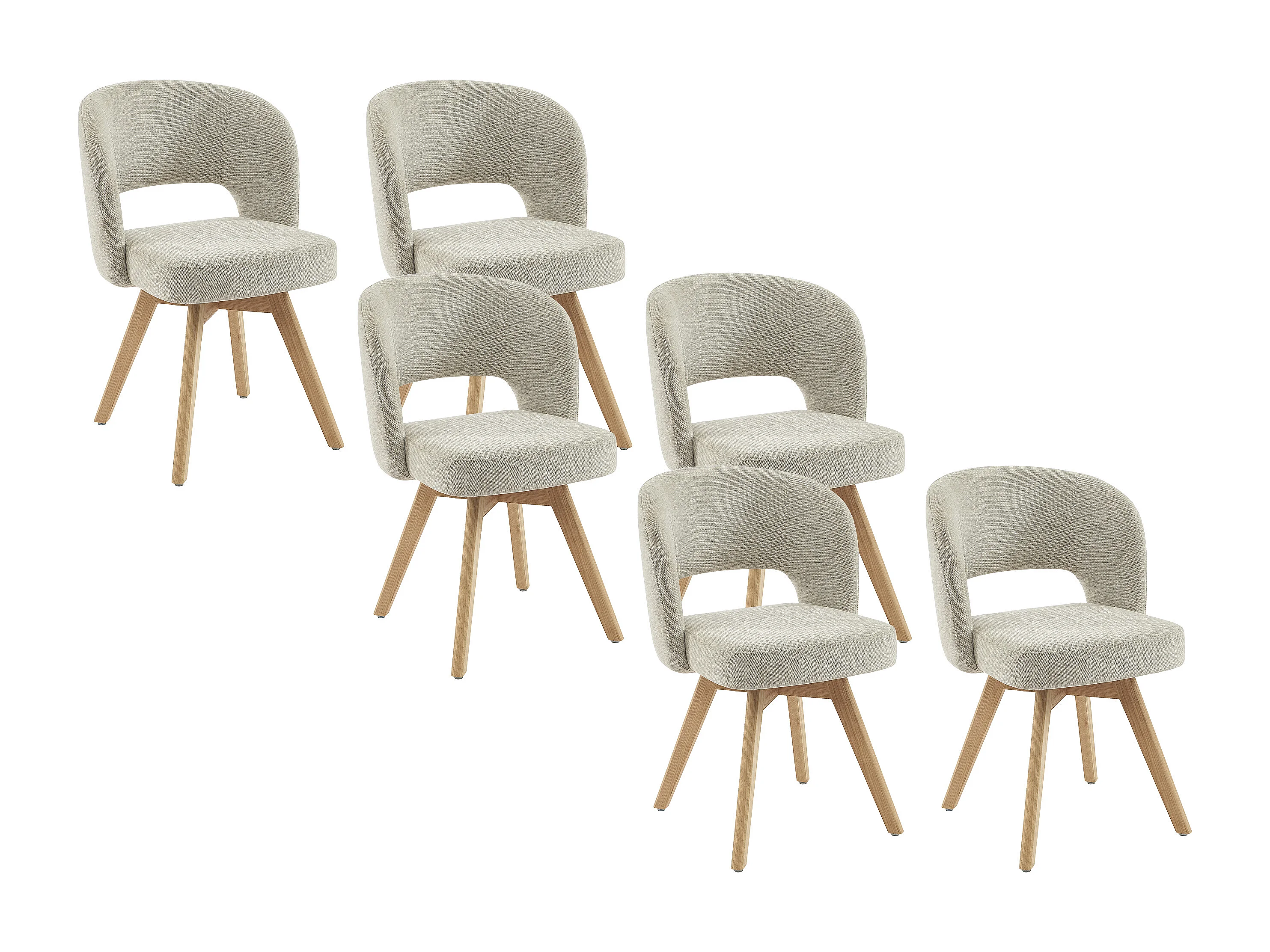 Lot de 6 chaises pivotantes en tissu et bois de chêne - Crème - GUSTAVY