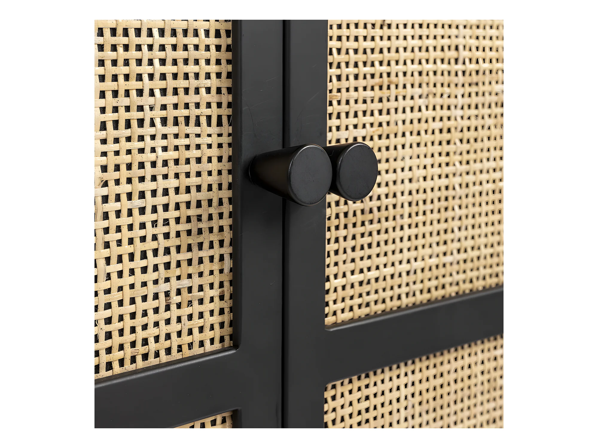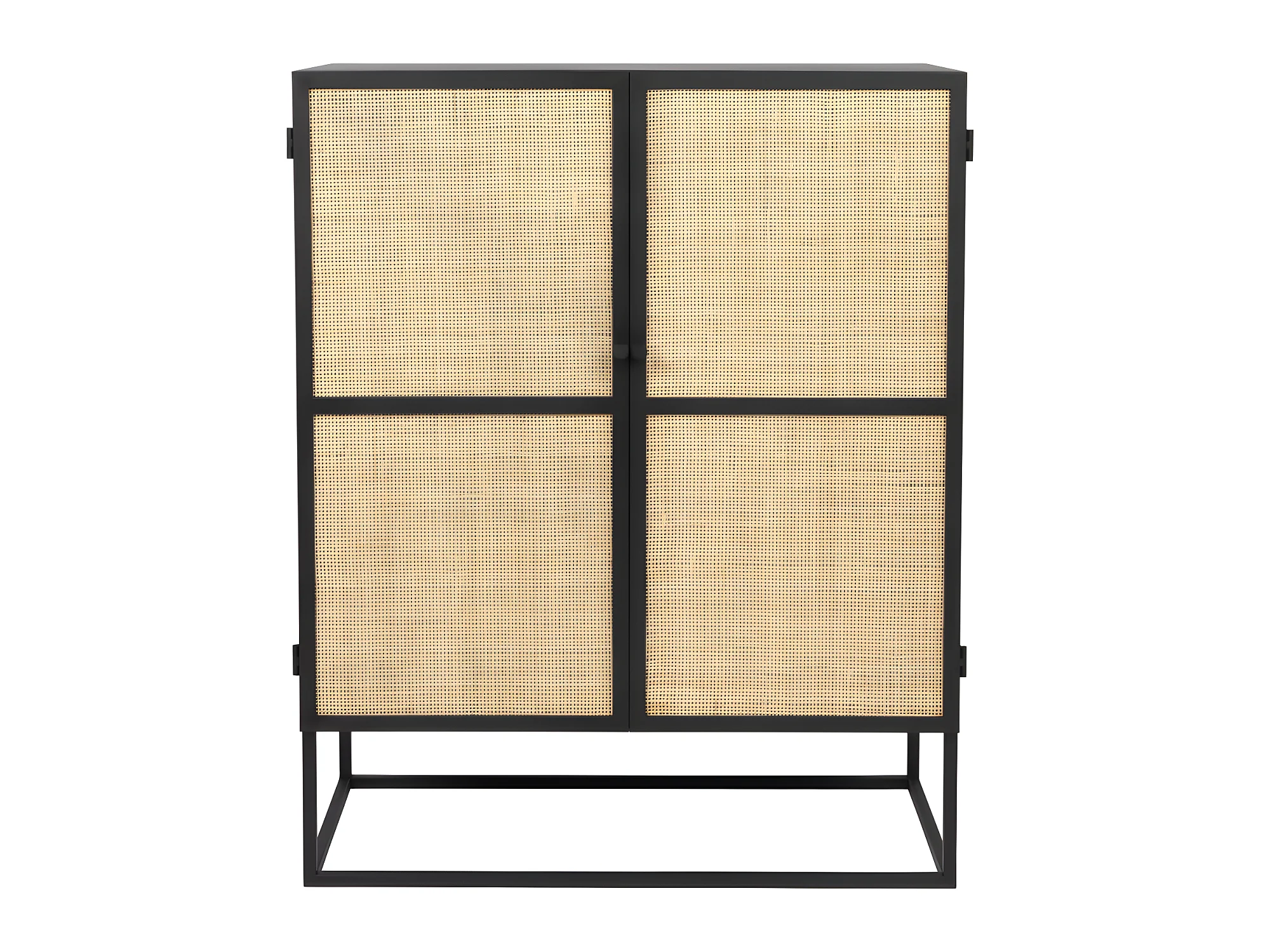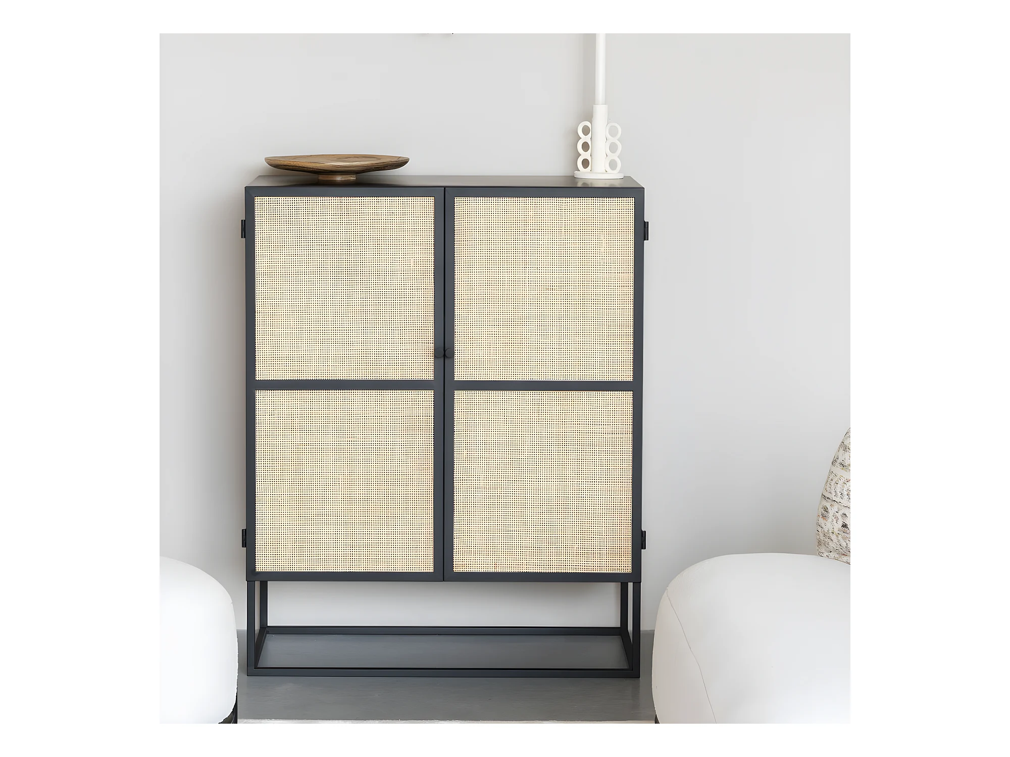 Guuji - Buffet 2 portes en bois et cannage L80cm - Couleur - Noir
