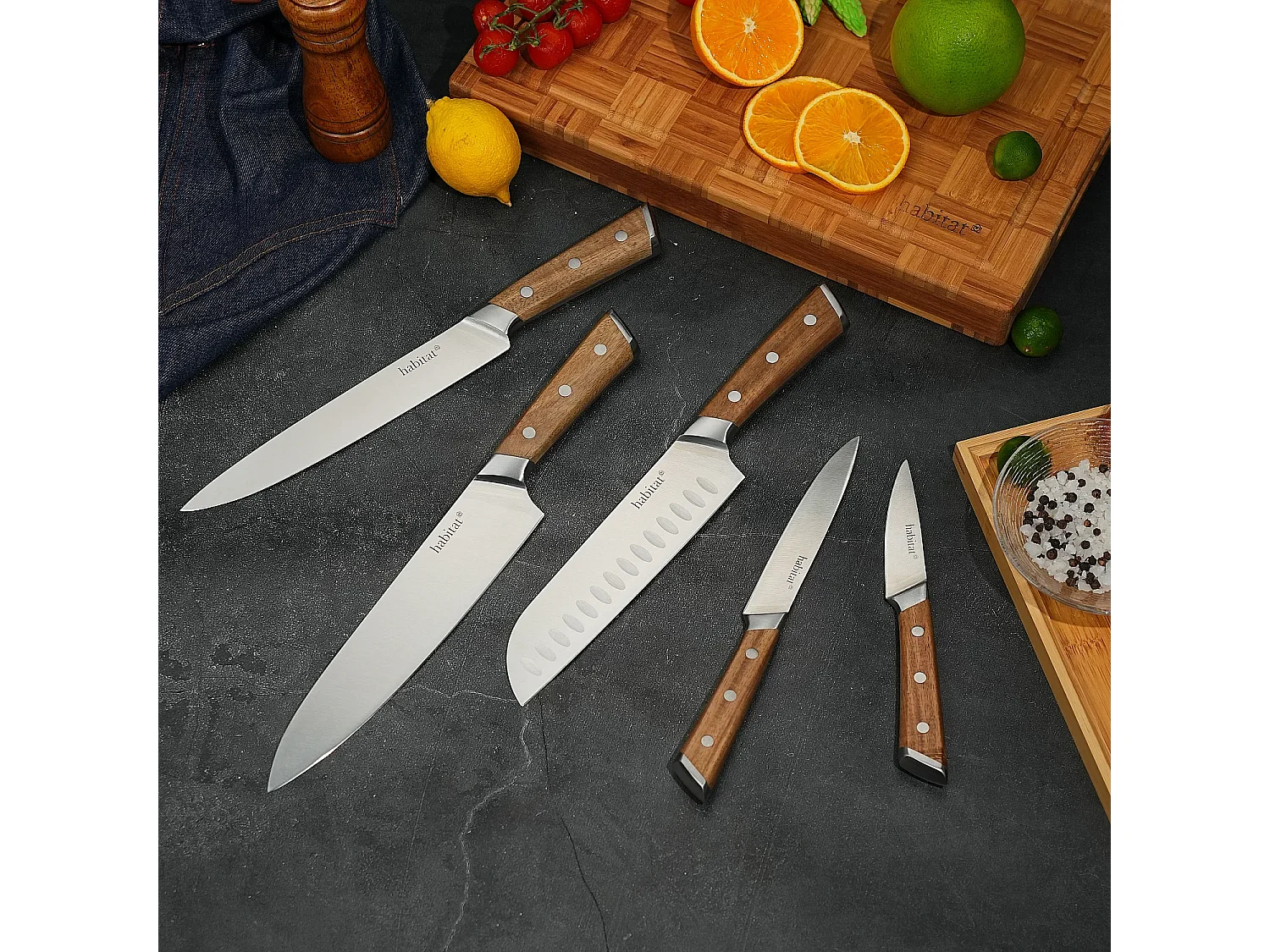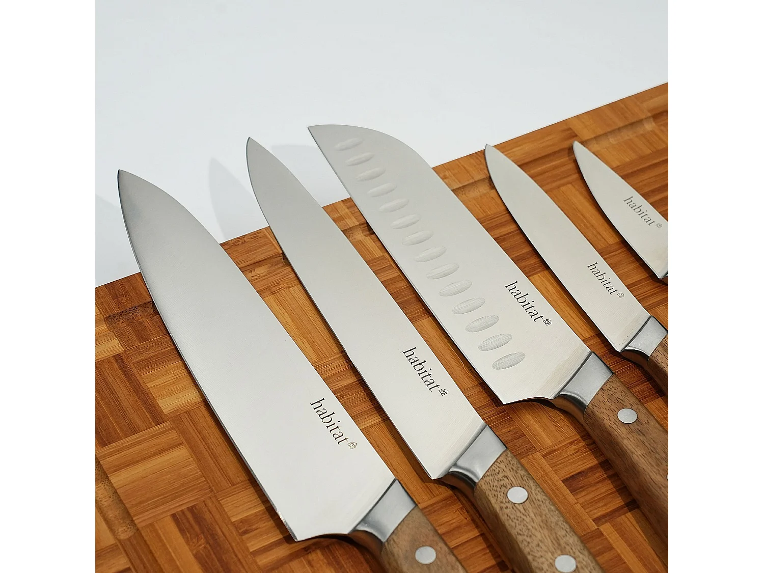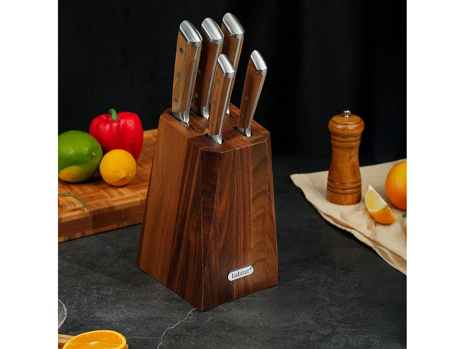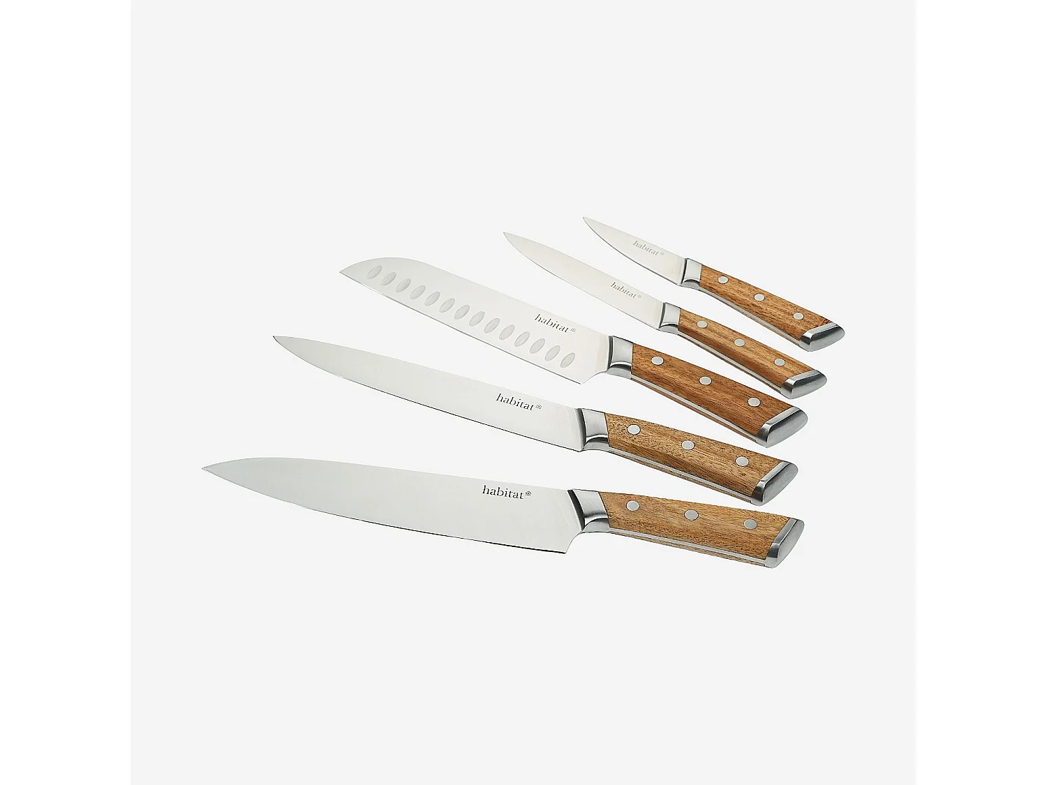 Bloc de 5 couteaux en acier inoxydable et bois d'acacia - Naturel