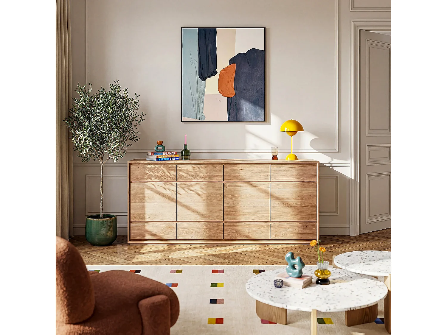 Buffet 4 portes et 6 tiroirs en chêne massif - Naturel