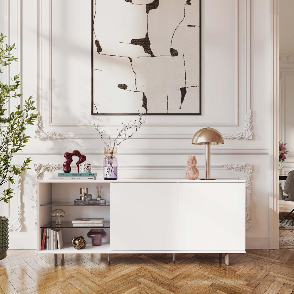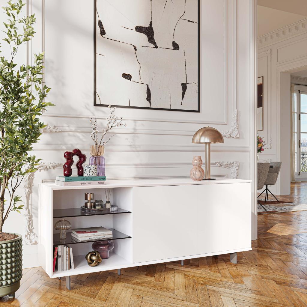 Habitat - Buffet bas 2 portes et pieds en métal - Blanc polaire - Agnes