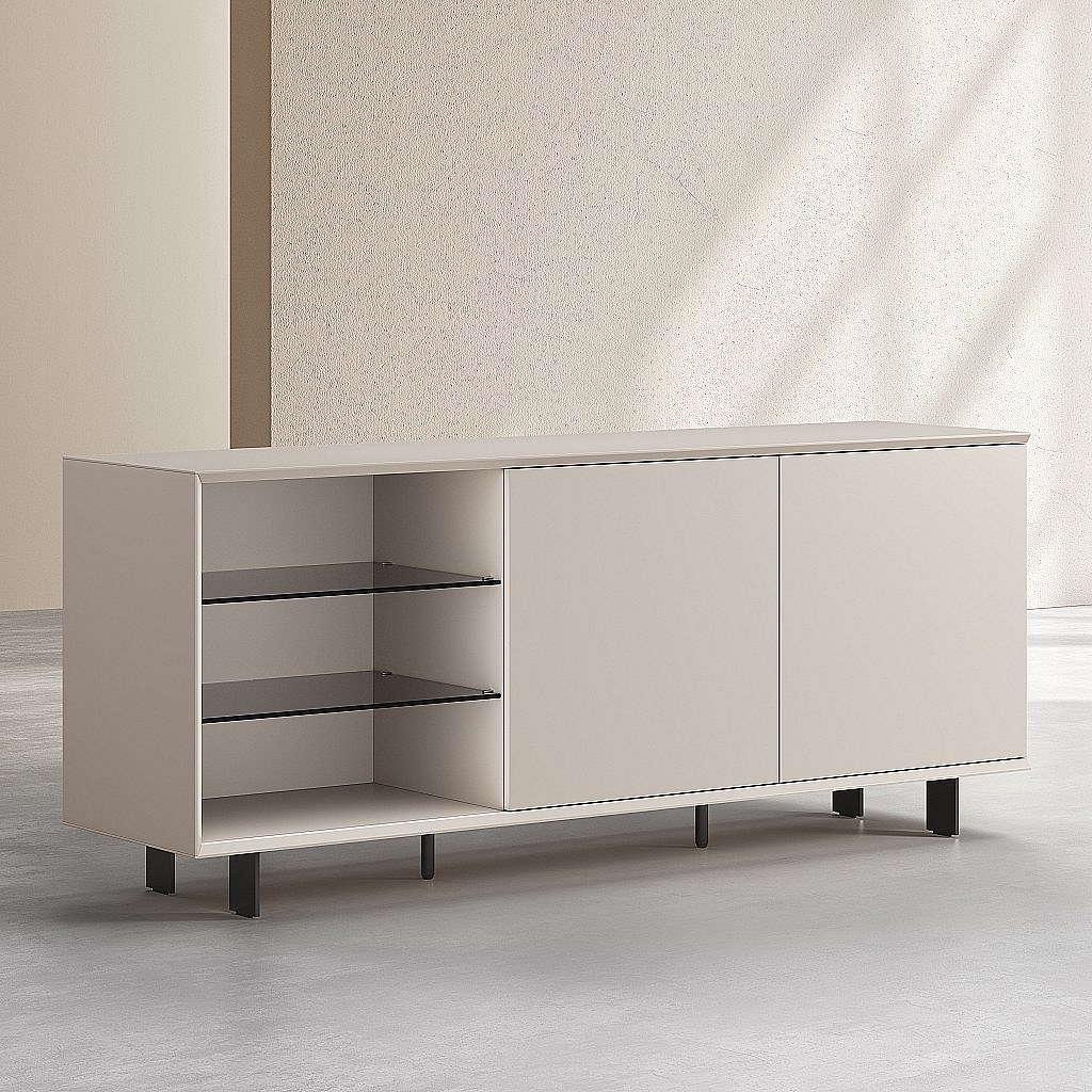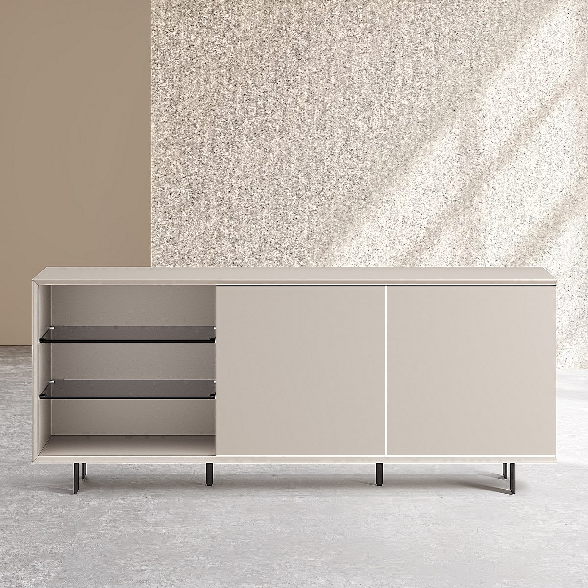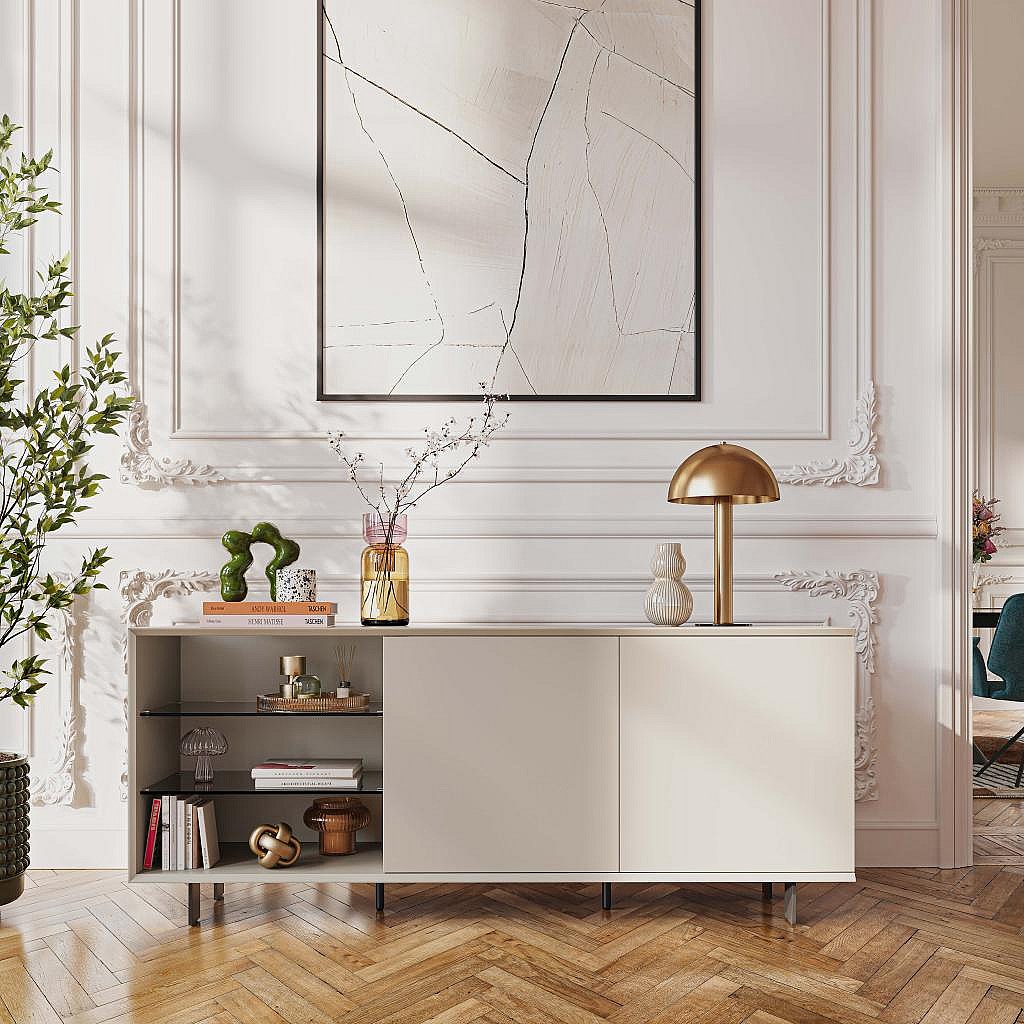 Habitat - Buffet bas 2 portes et pieds en métal - Crème - Agnes