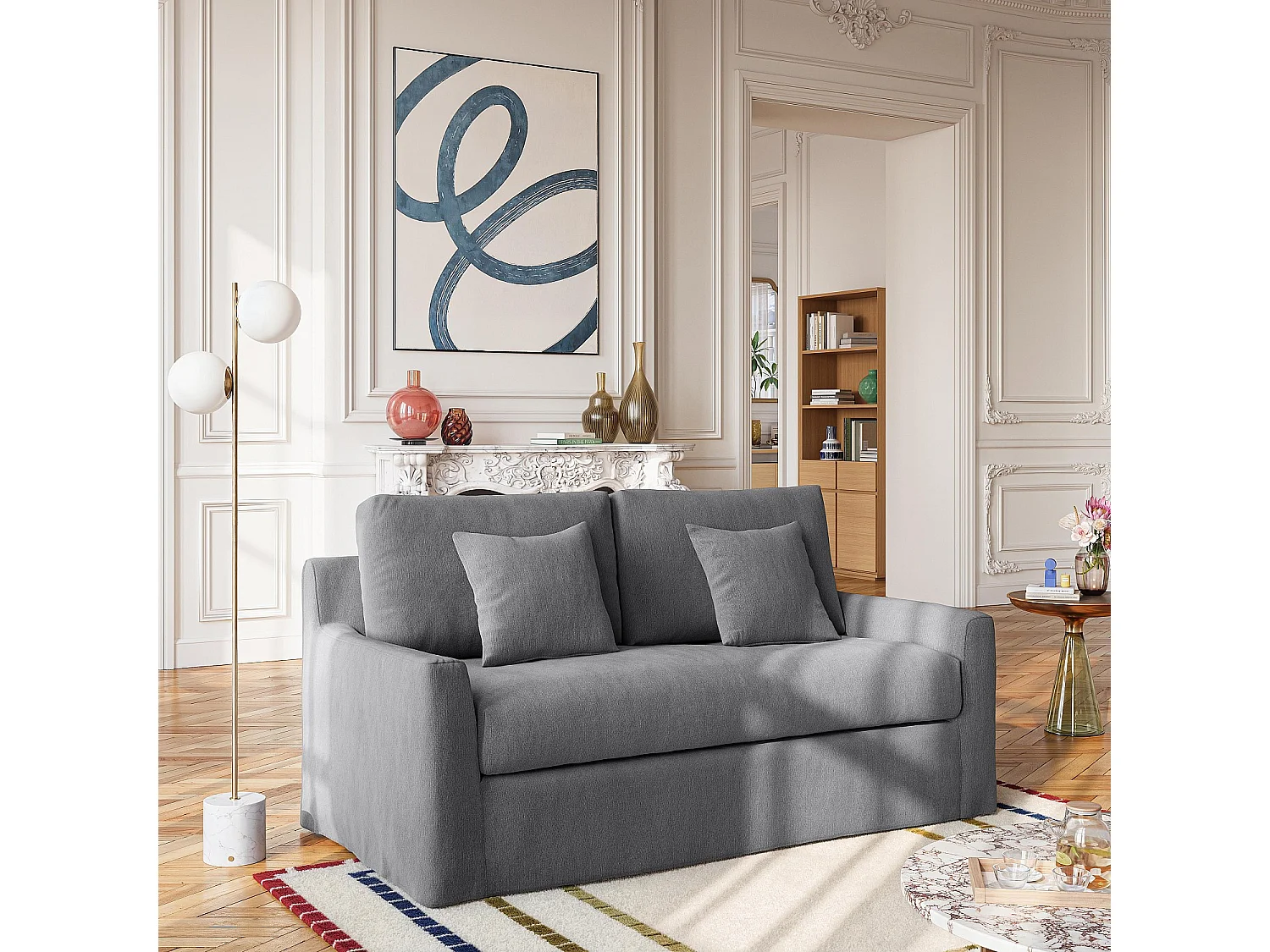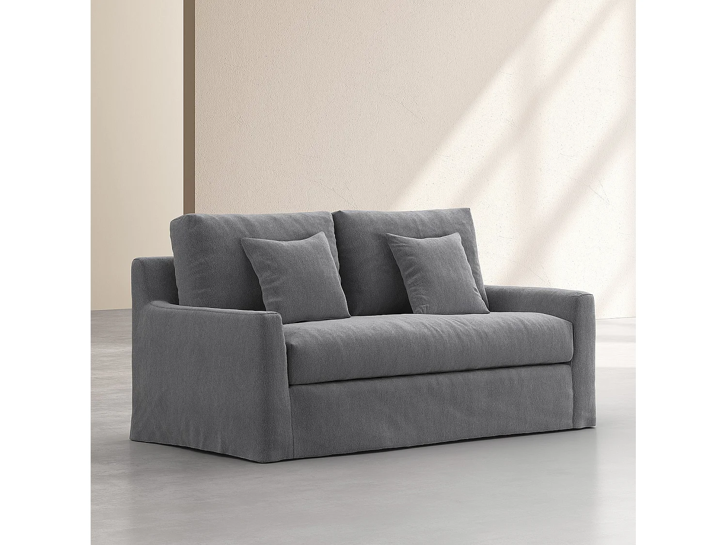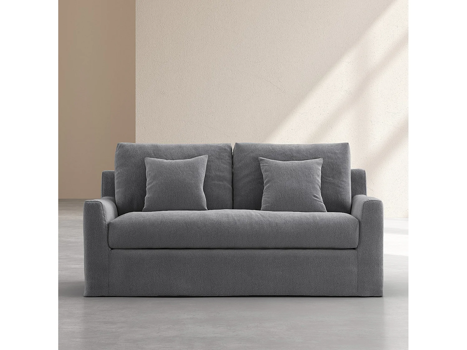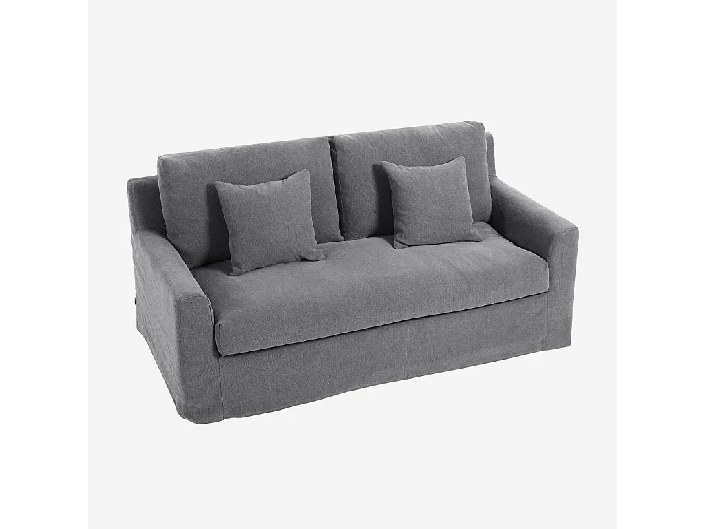 Habitat - Canapé 2 places déhoussable en coton et lin garni de plumes - Gris ardoise - Ostuni