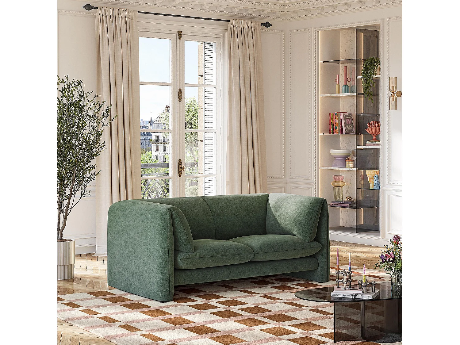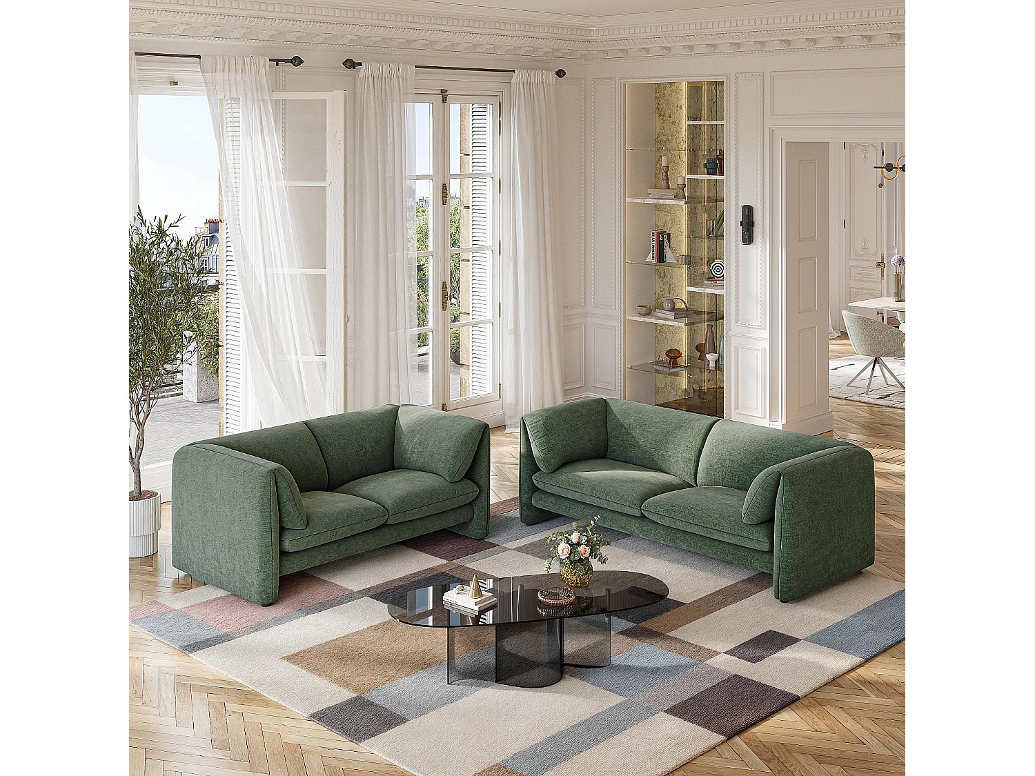 Canapé 2 places en tissu avec dossier garni de plumes - Vert kaki