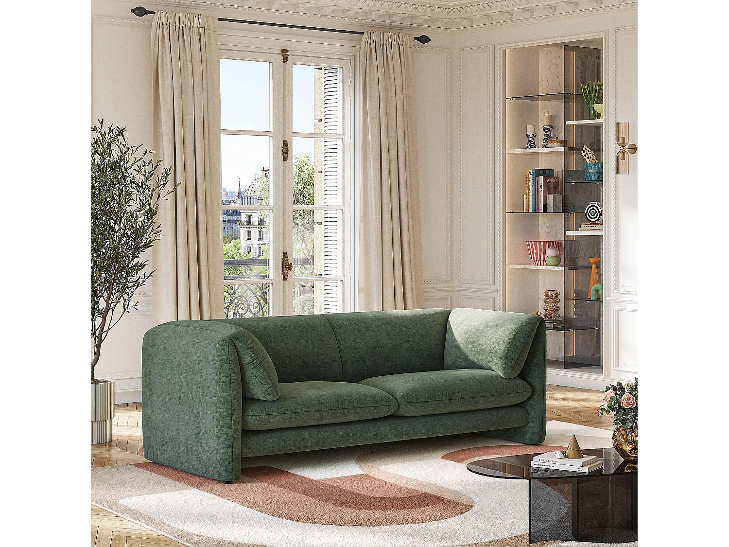 Habitat - Canapé 3 places en tissu avec dossier garni de plumes - Vert kaki - Positano