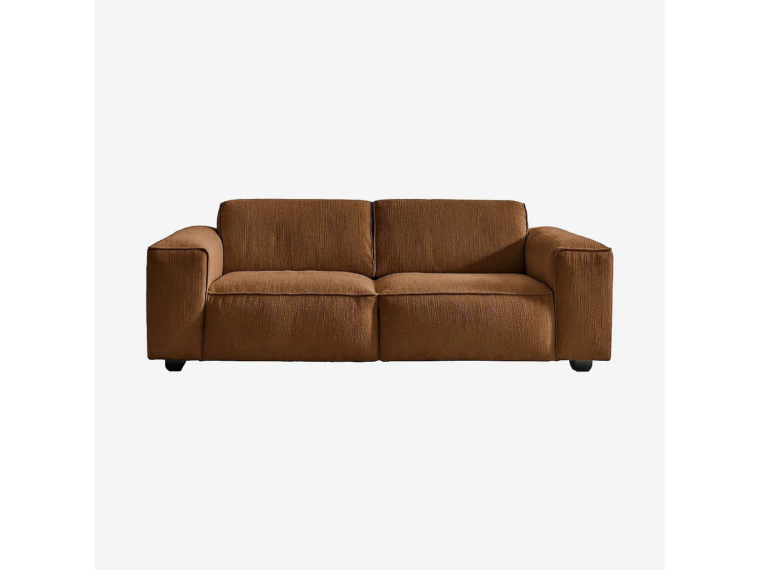 Canapé 3 places en tissu bouclette courte Mira - Marron noisette