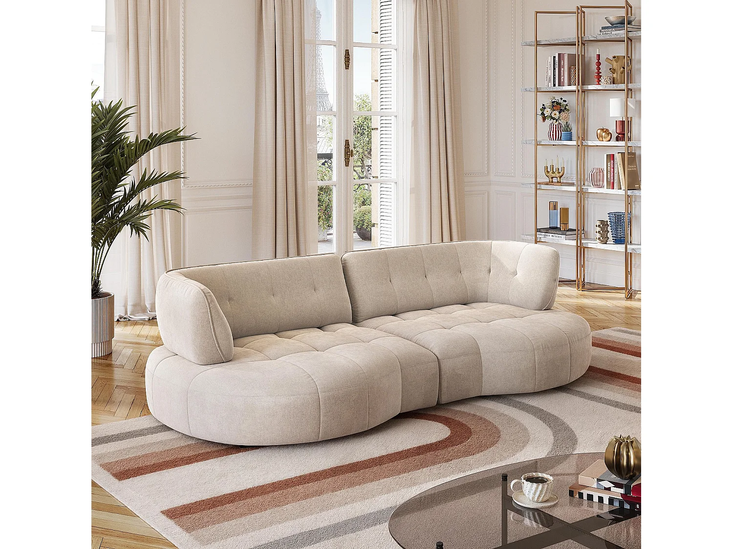 Habitat - Canapé 4 places capitonné en tissu avec dossier avance-recule - Crème - Alizee