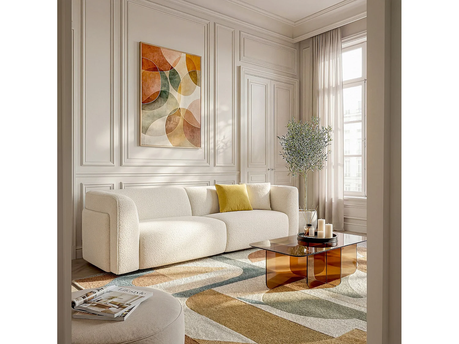 Habitat - Canapé 4 places en tissu bouclette - Crème - Design by Nicole Aptel - Temoli