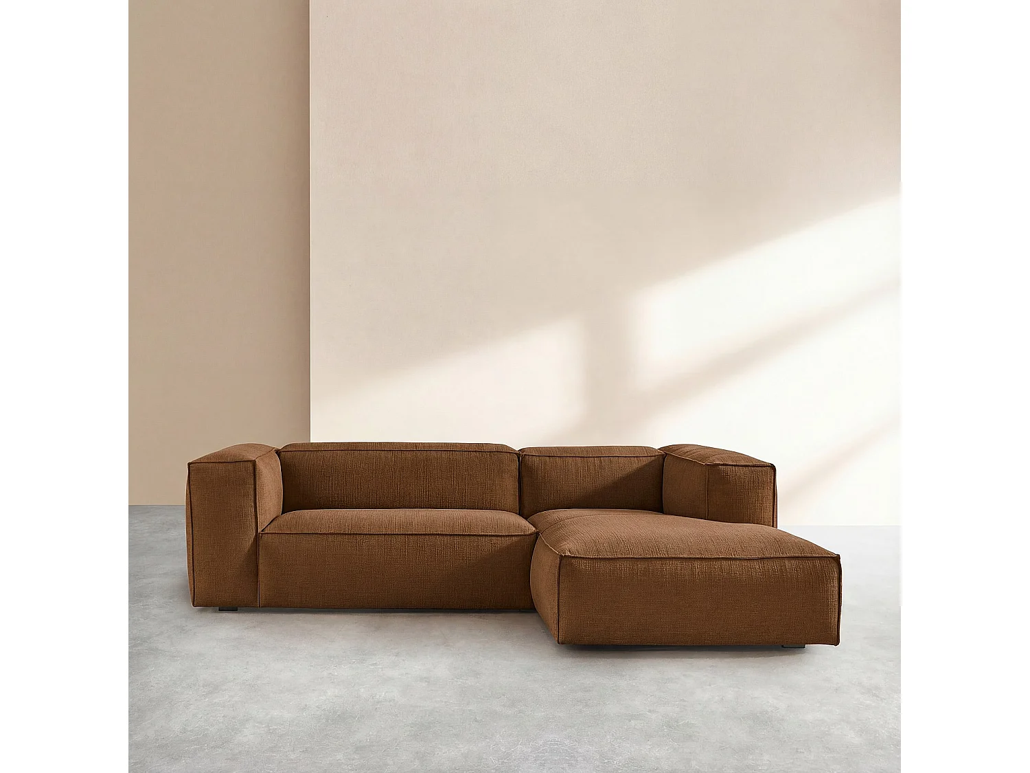 Habitat - Canapé d'angle droit en tissu bouclette courte Mira - Marron noisette - Edwin