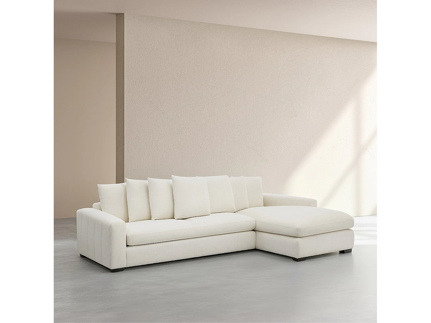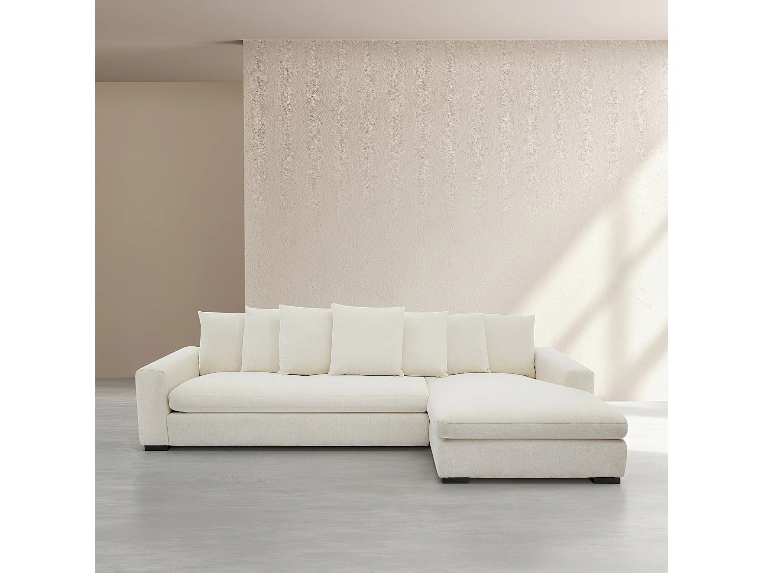 Canapé d'angle droit en tissu garni de plumes - Ivoire