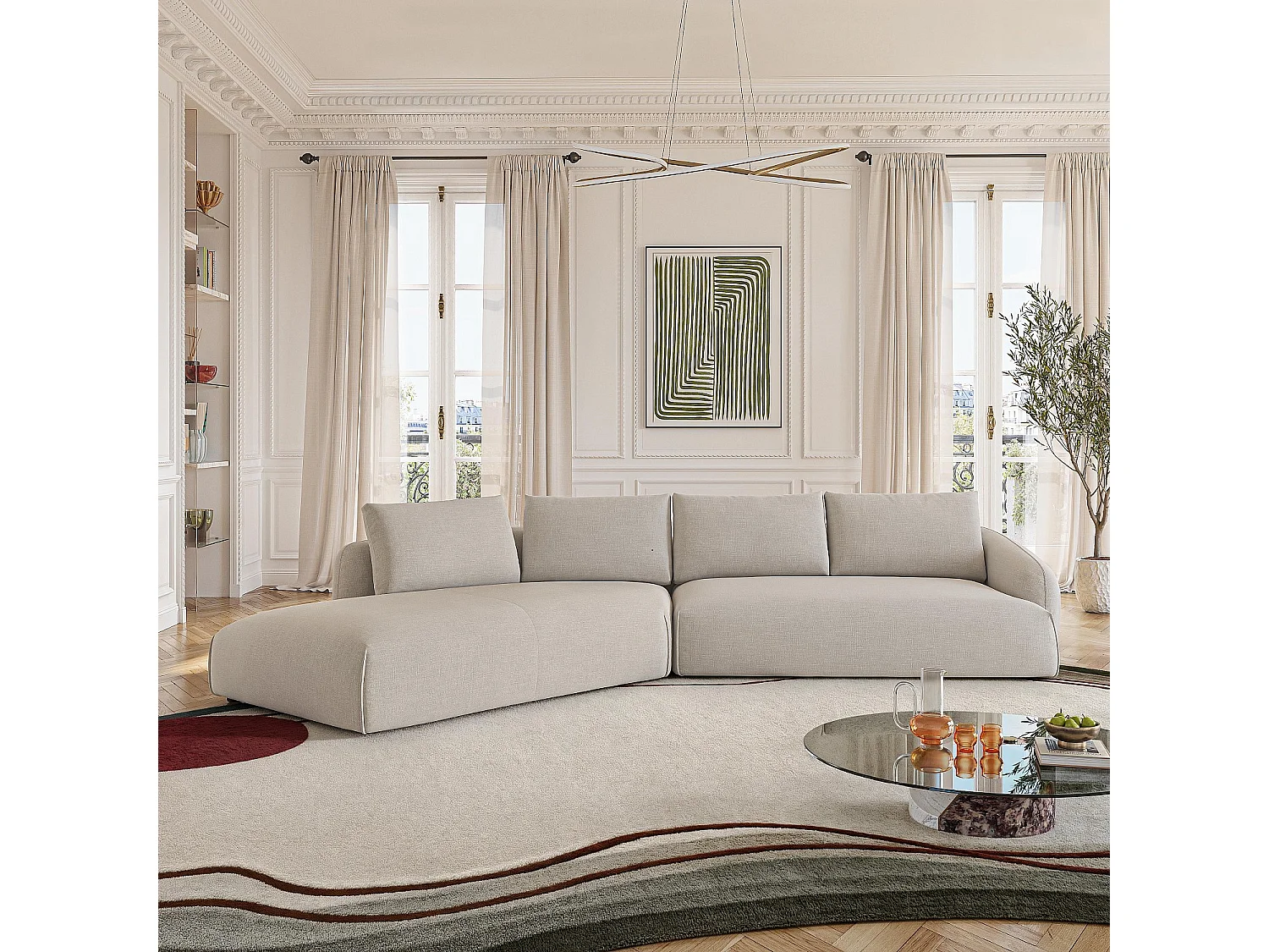 Habitat - Canapé d'angle gauche en tissu garni de plumes - Beige - Nizida