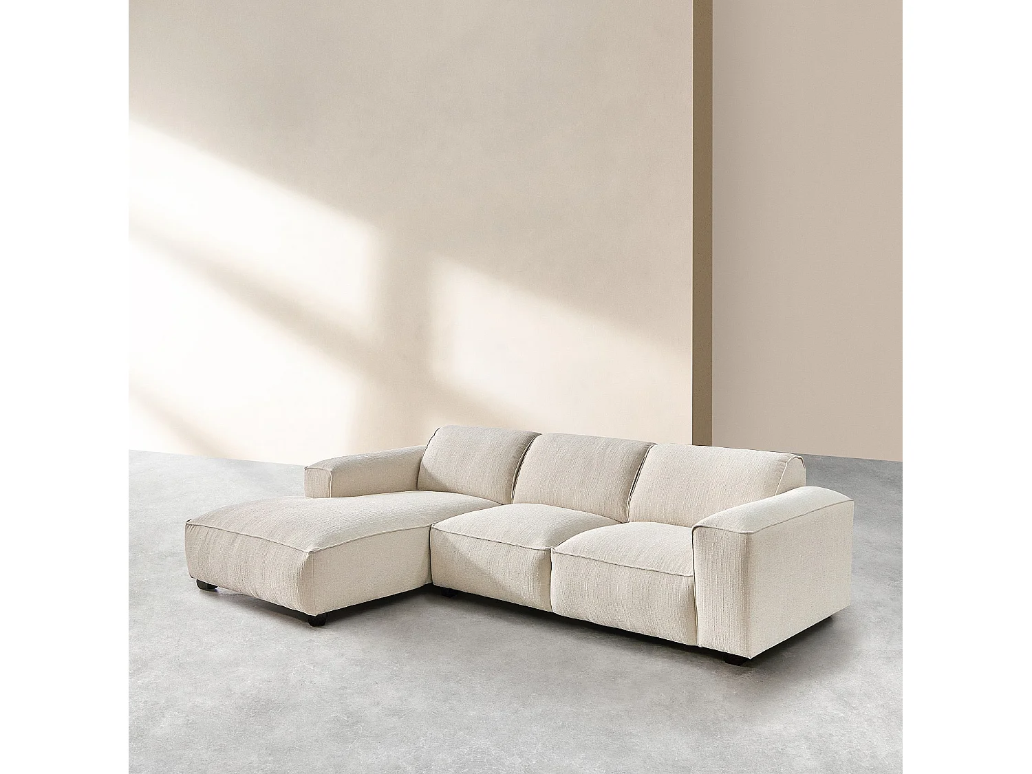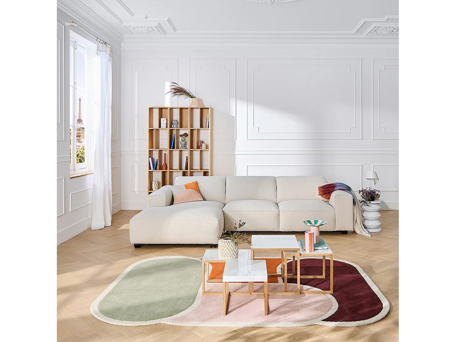 Canapé d'angle gauche en tissu bouclette courte Mira - Ivoire
