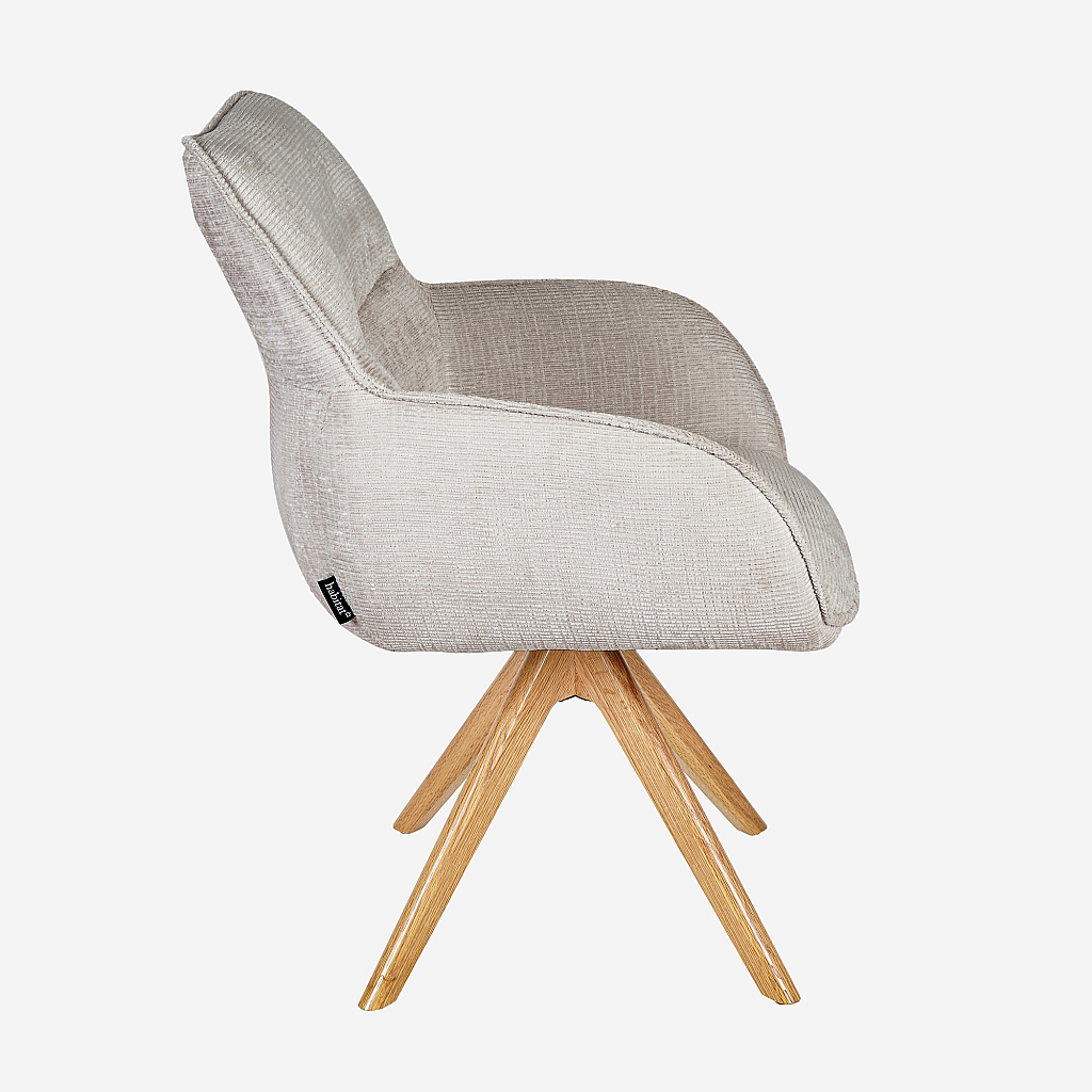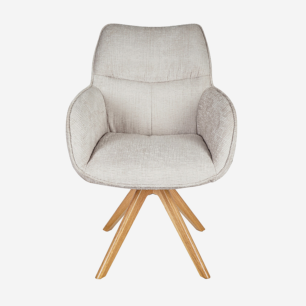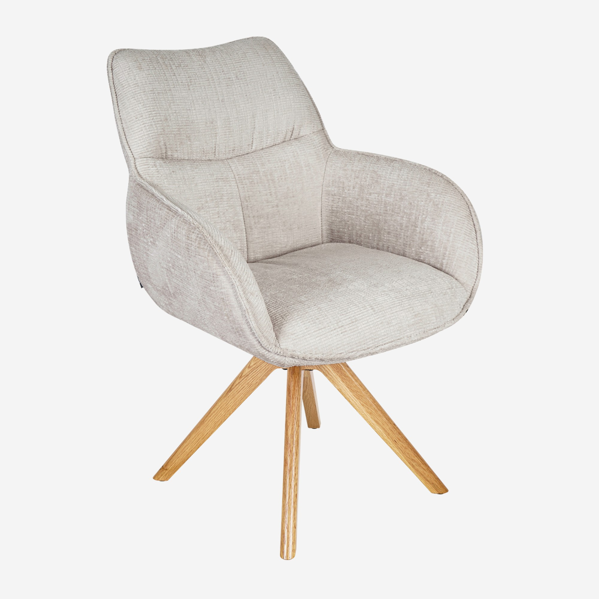 Habitat - Chaise pivotante en tissu chenille et chêne avec accoudoirs - Ivoire - Arzana