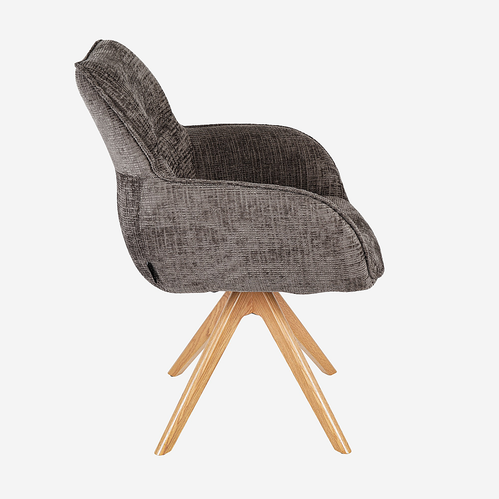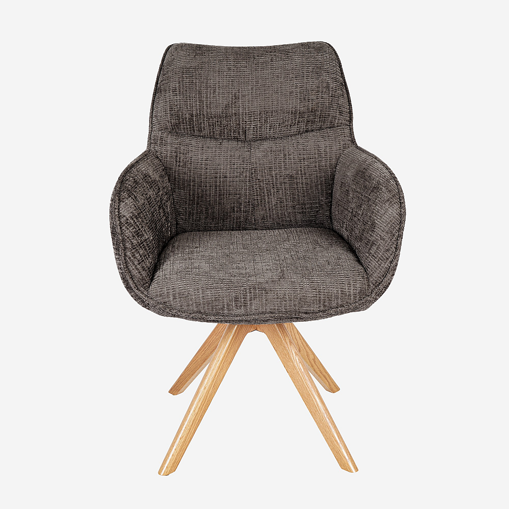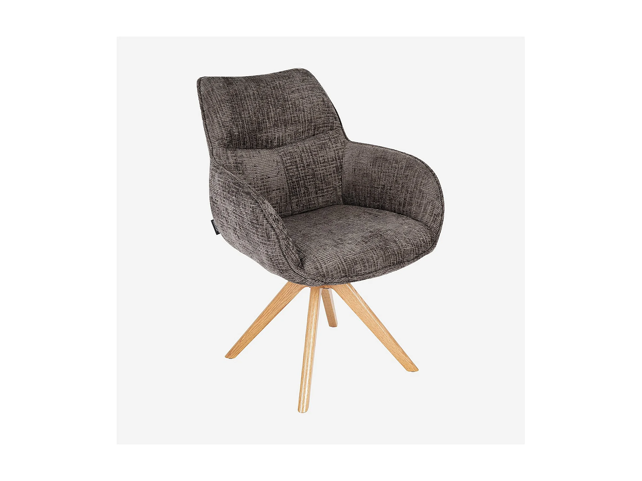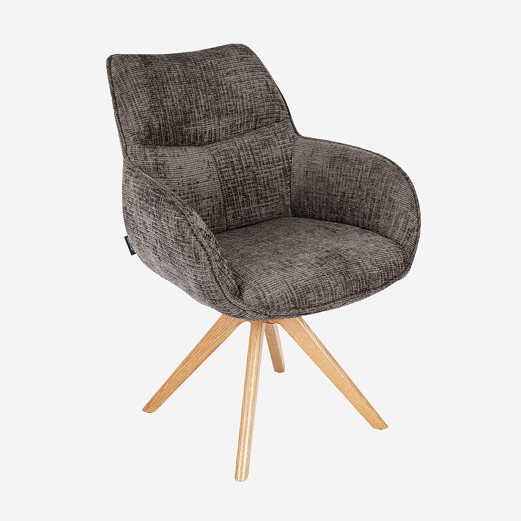 Habitat - Chaise pivotante en tissu chenille et chêne avec accoudoirs - Taupe - Arzana