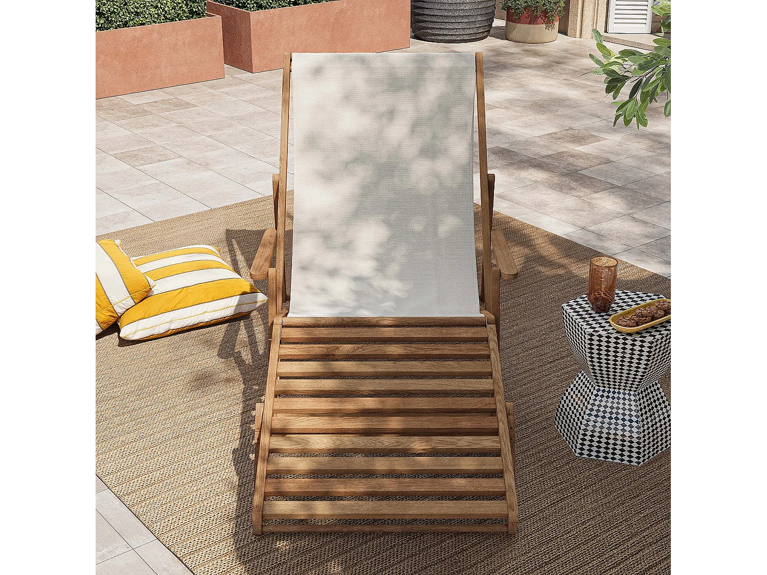 Habitat - Chilienne en chêne avec accoudoirs et toile en coton avec repose-pieds - Écru - Maui
