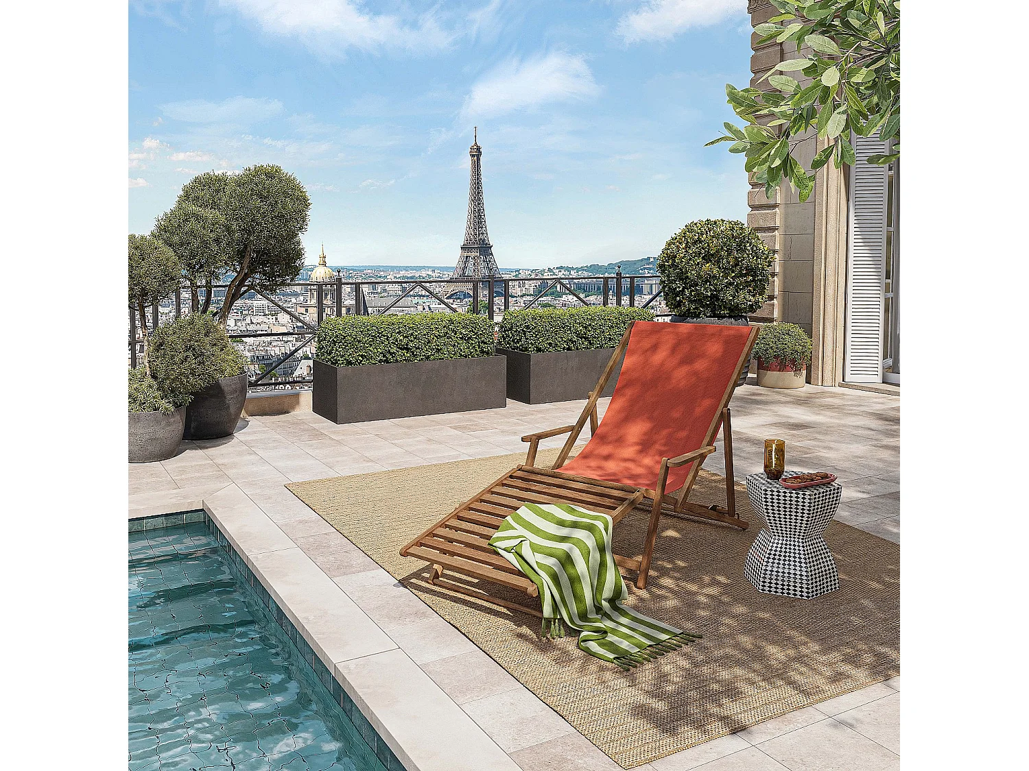 Habitat - Chilienne en chêne avec accoudoirs et toile en coton avec repose-pieds - Orange brique - Maui
