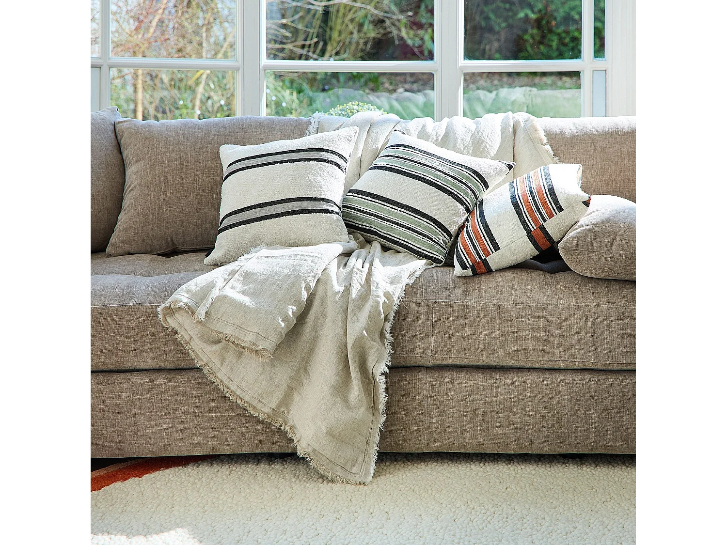Habitat - Coussin en tissu jacquard bouclette - 44 x 44 cm - Motifs à rayures - Gris - Arsene