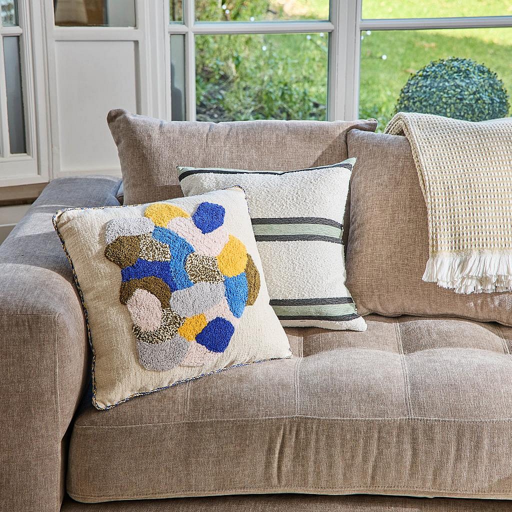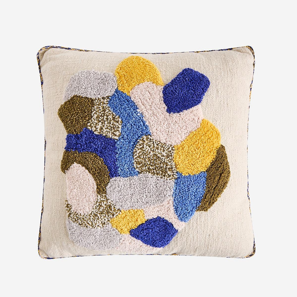 Habitat - Coussin tufté en coton - 45 x 45 cm - Vert kaki et bleu - Design by Floriane Jacques - Aubin
