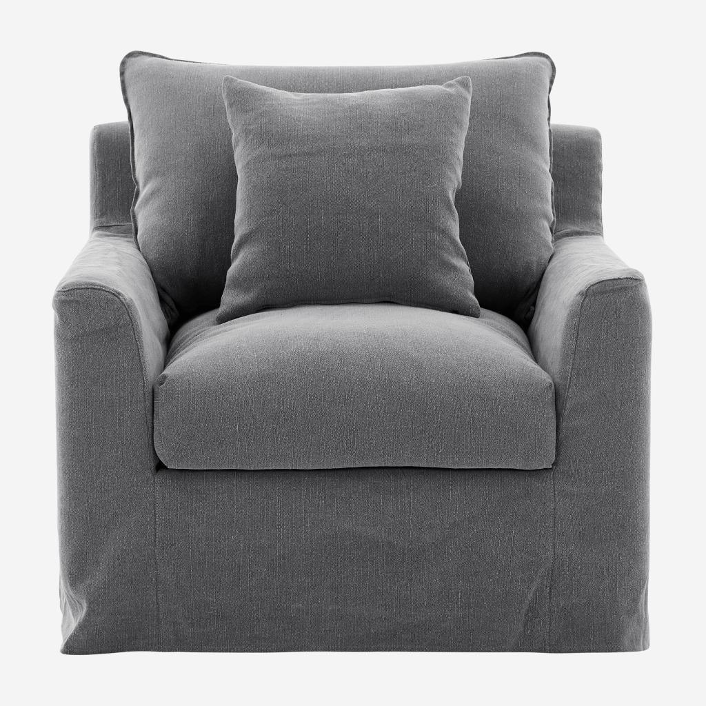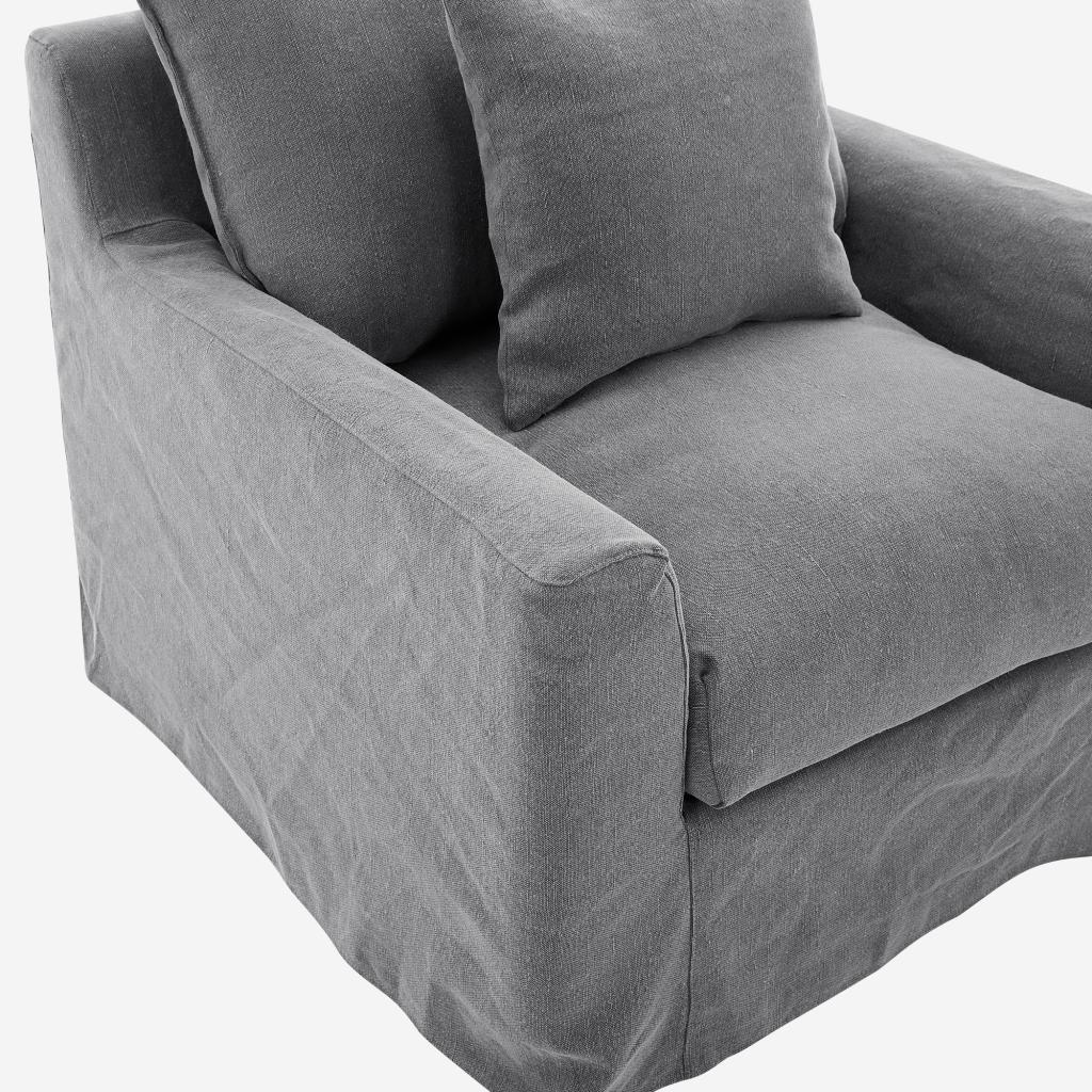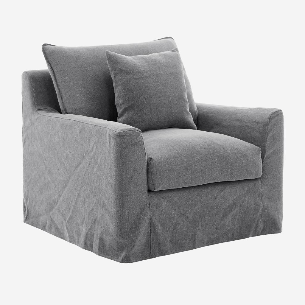 Habitat - Fauteuil déhoussable en coton et lin garni de plumes - Gris ardoise - Ostuni