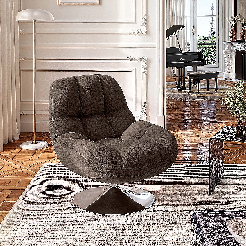 Habitat - Fauteuil pivotant en tissu et métal chromé - Taupe - Mogliano