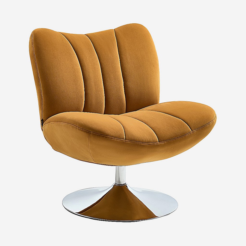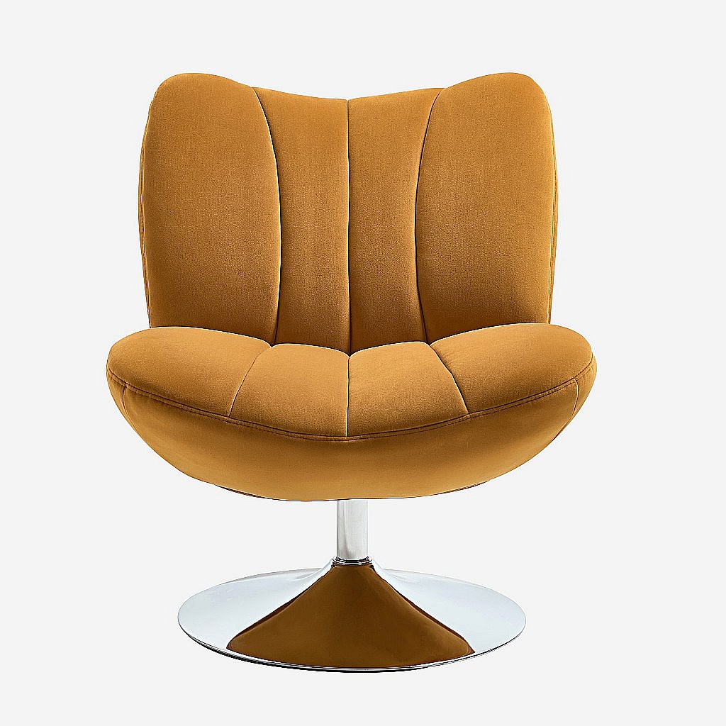 Habitat - Fauteuil pivotant matelassé en tissu et métal chromé - Miel - Andrew