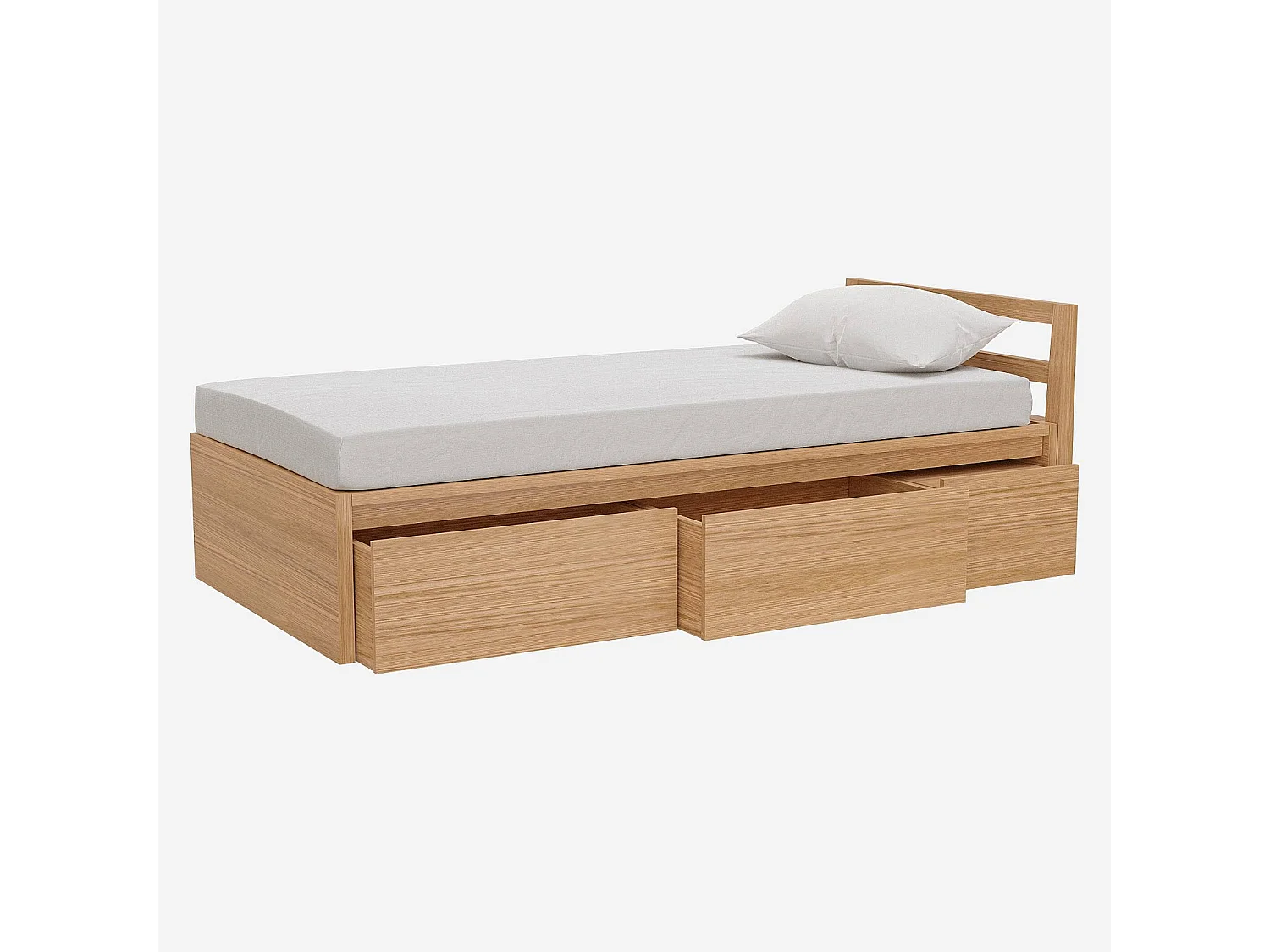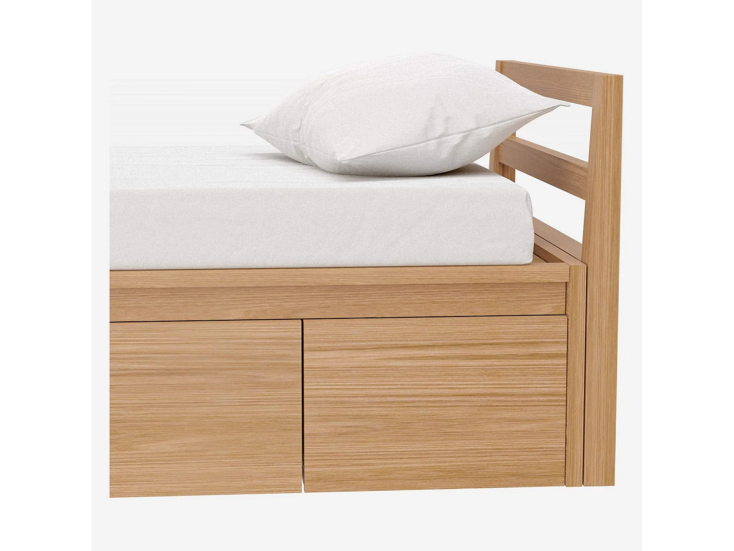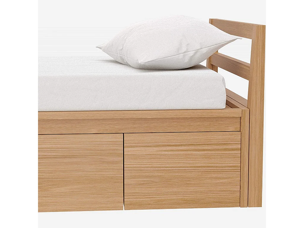 Lit 90 x 200 cm avec rangements en chêne - Naturel
