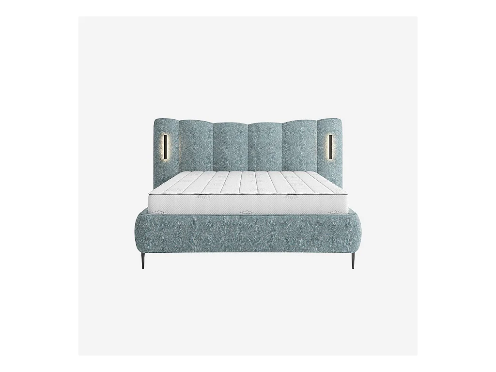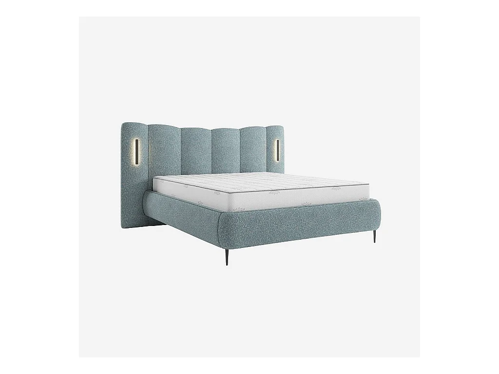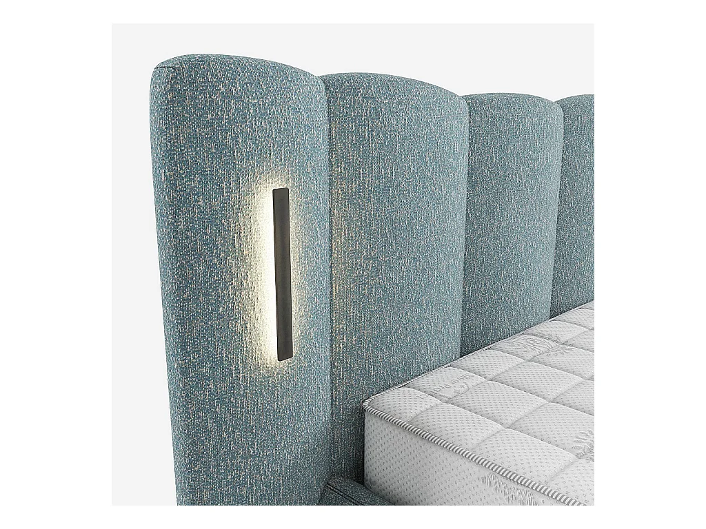 Habitat - Lit coffre 160 x 200 cm en tissu texturé avec LED intégrées - Bleu chiné - Siderno