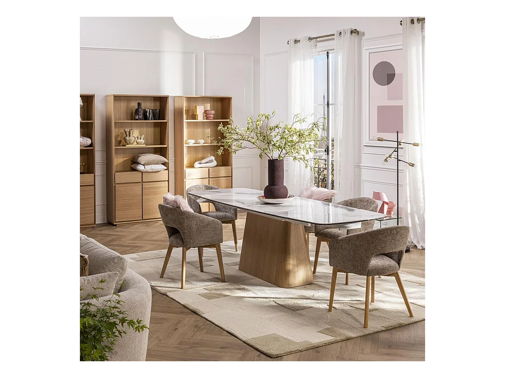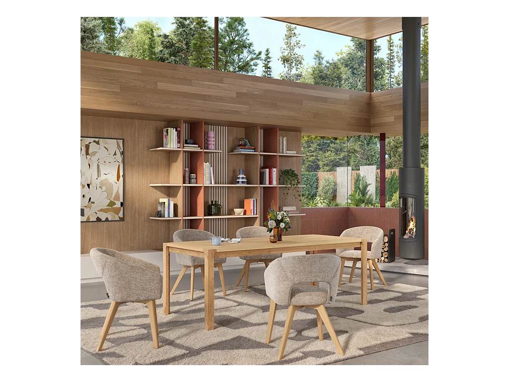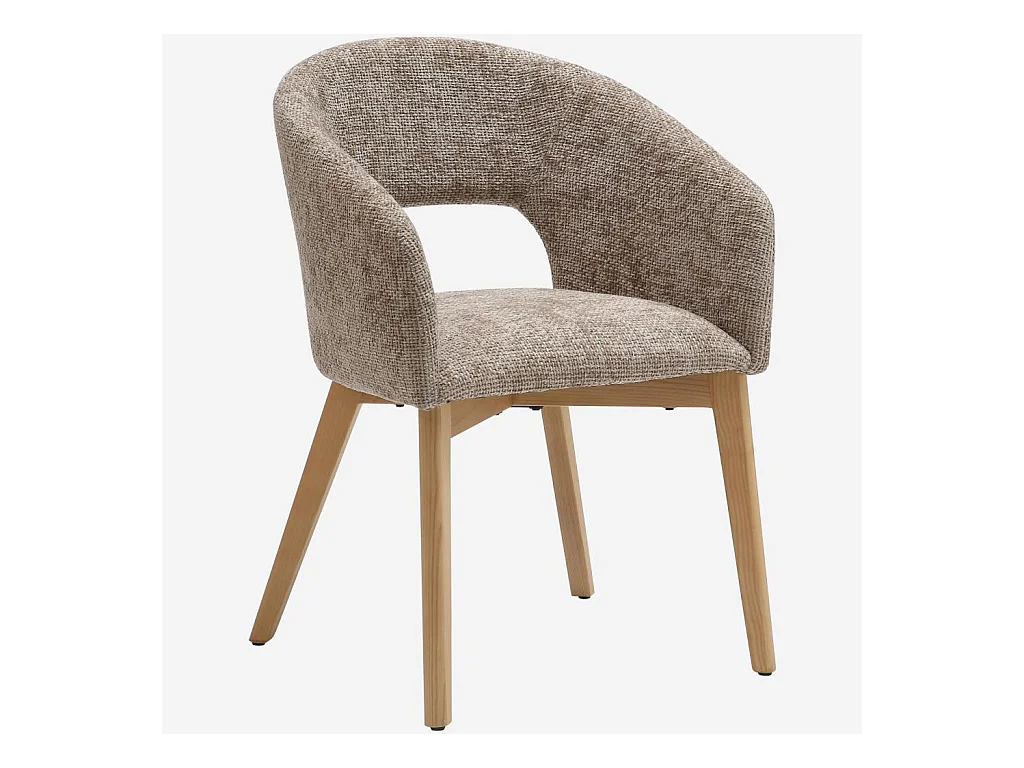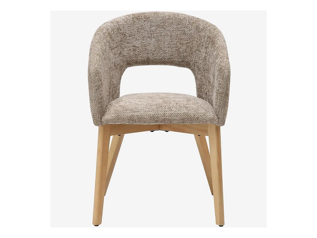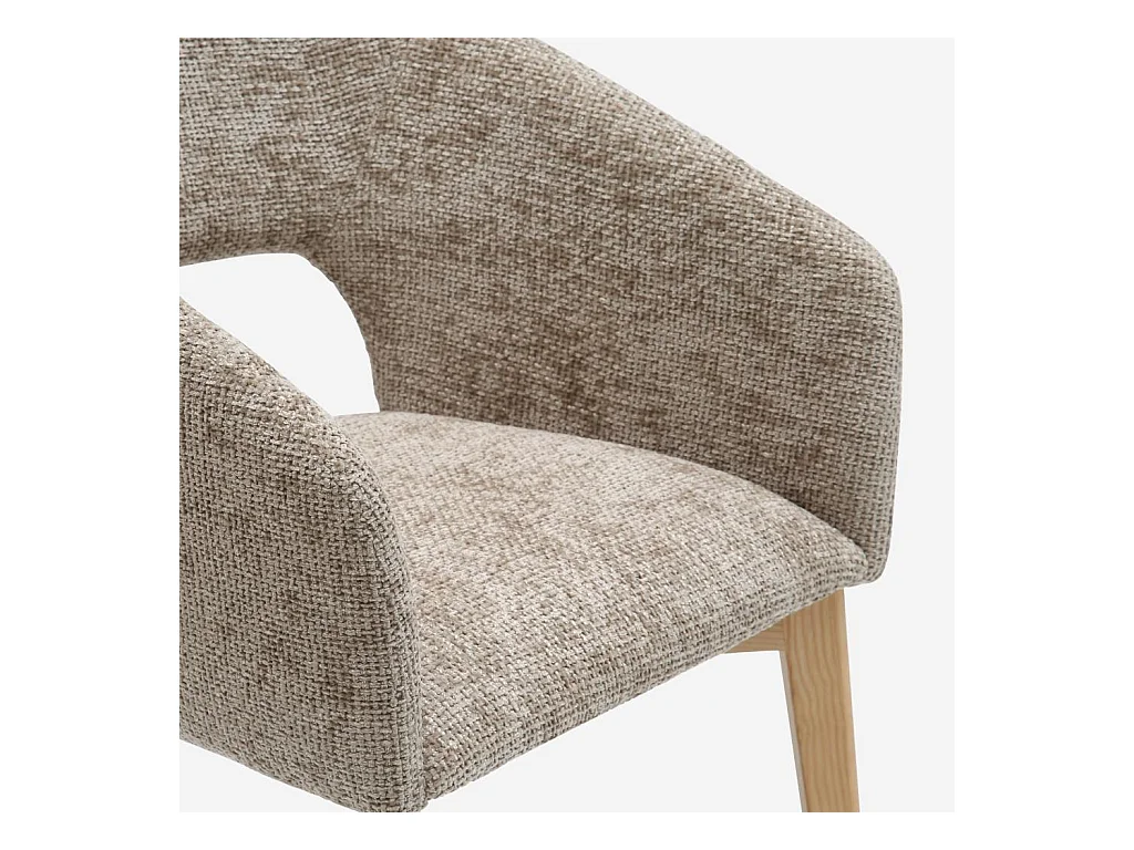 Habitat - Lot de 2 chaises en tissu chenille et bois massif avec accoudoirs - Beige et chêne - Rusti