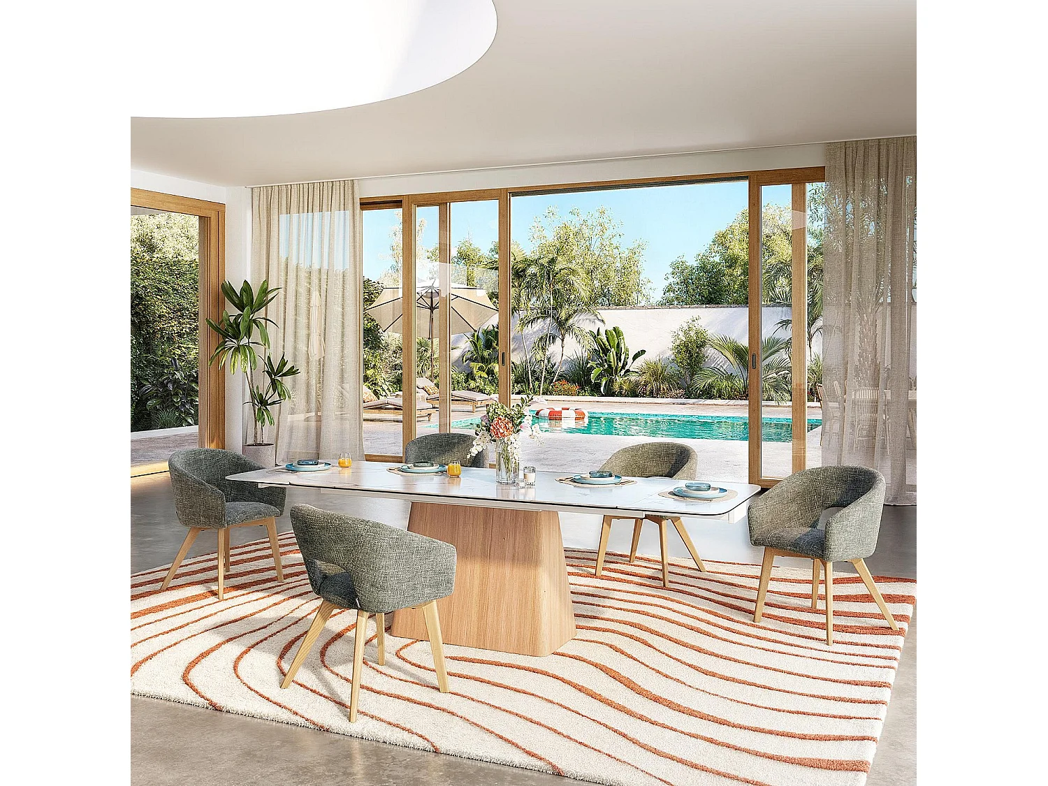 Habitat - Lot de 2 chaises en tissu chenille et bois massif avec accoudoirs - Vert et chêne - Rusti